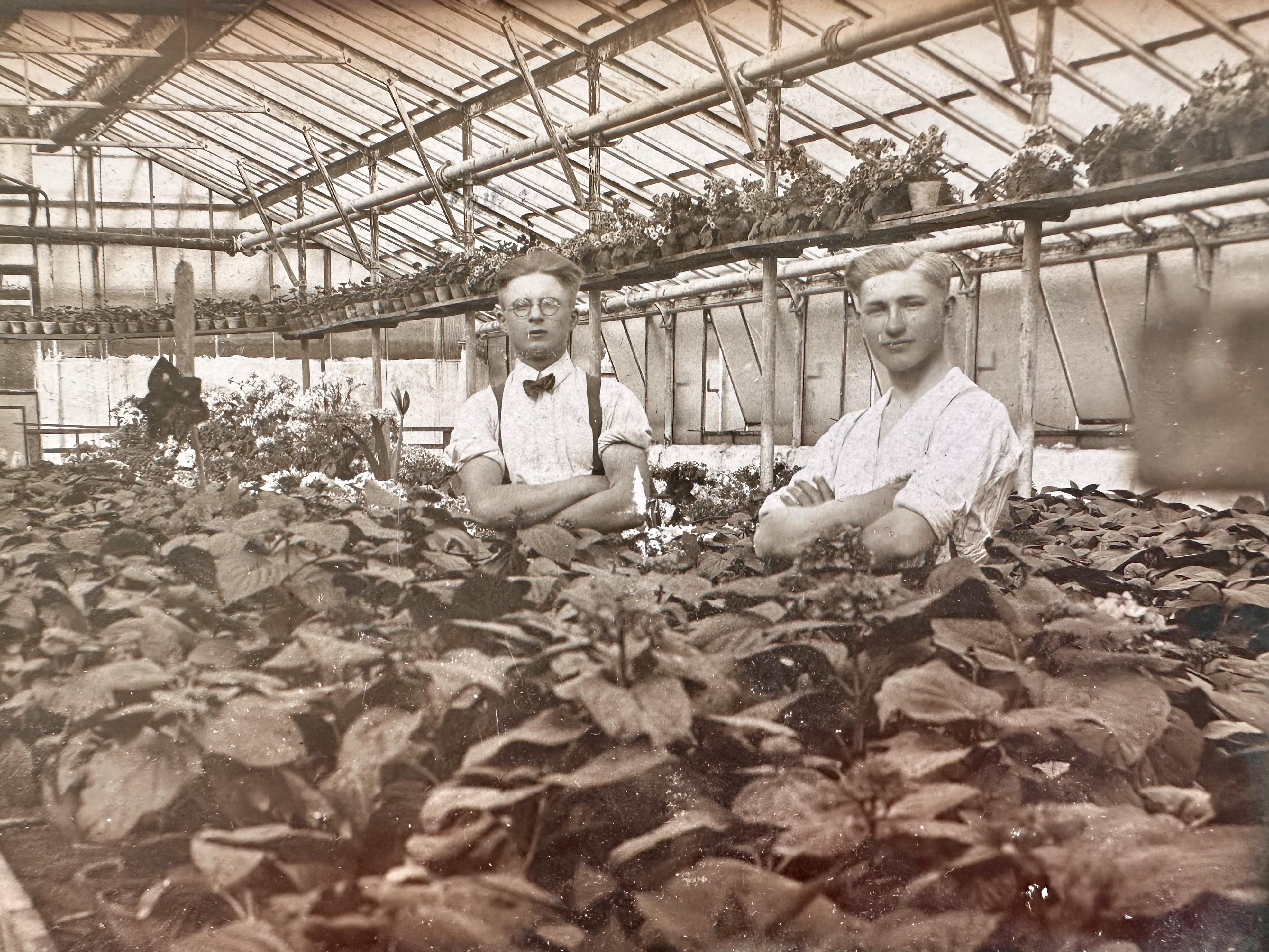 My grandpa in his families flower greenhouse, Schleswig Holstein in the late 30s/ early 40s I’m guessing? by chewybreadroll
