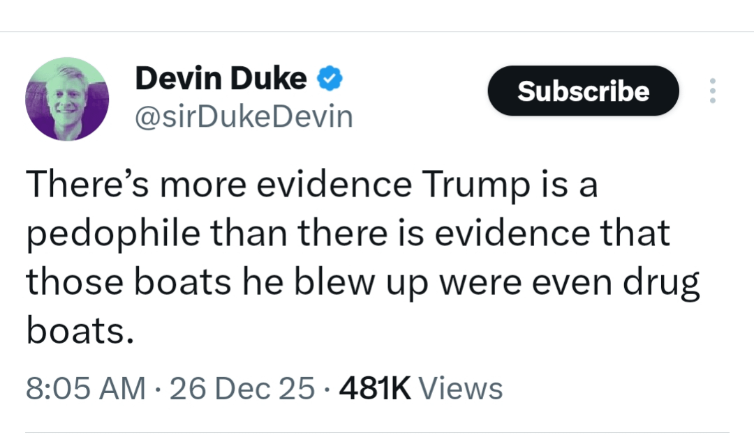 TesticleezzNuts on December 28, 2025 12:11 pm Like we needed more. I really hope this administration gets out in trial for all the cruelty and misery they have commited.