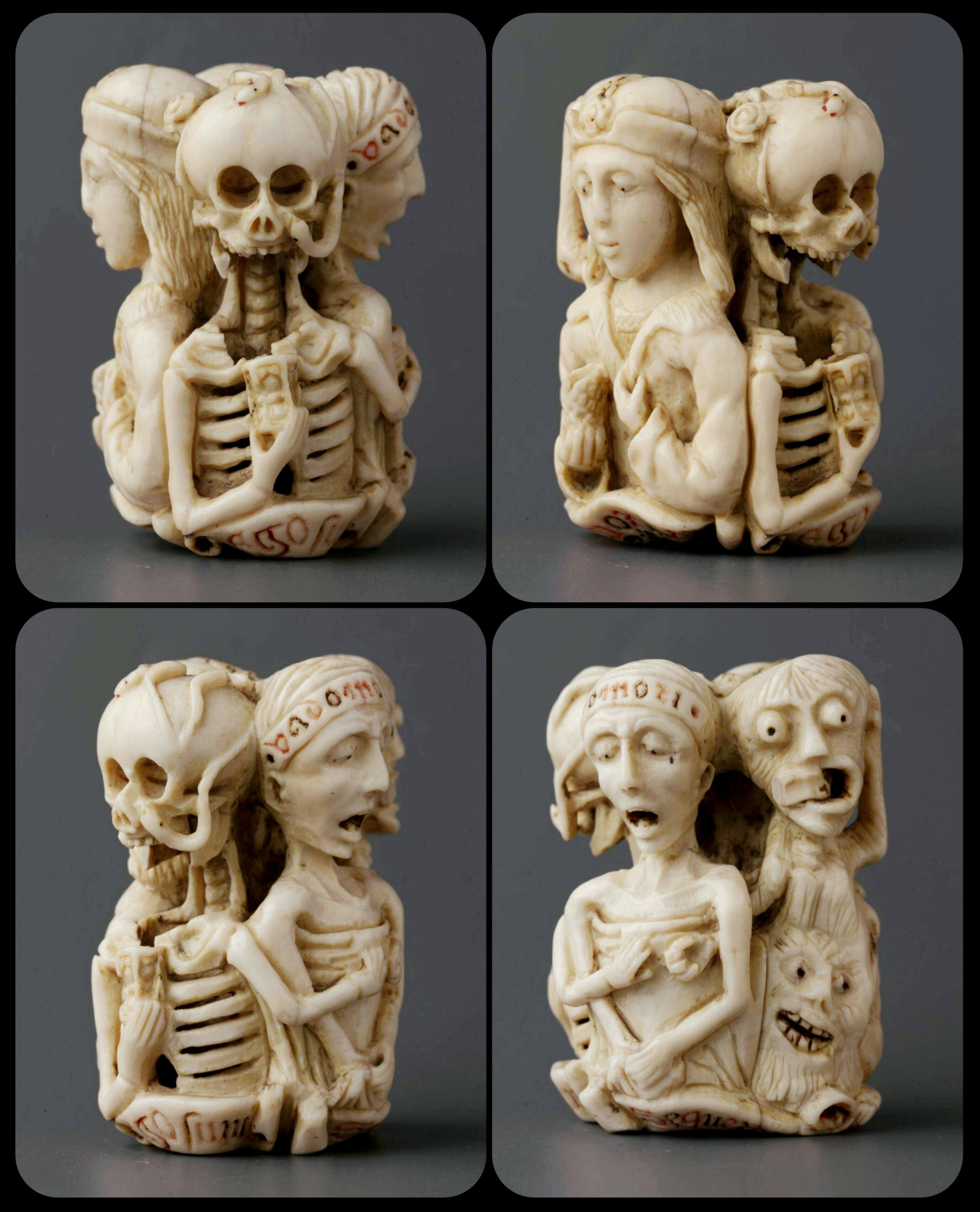 > This small ivory carving conveys one of the most profound themes of the late Middle Ages, serving as a *memento mori,* a reminder of the transitory nature of life and the inevitability of death.