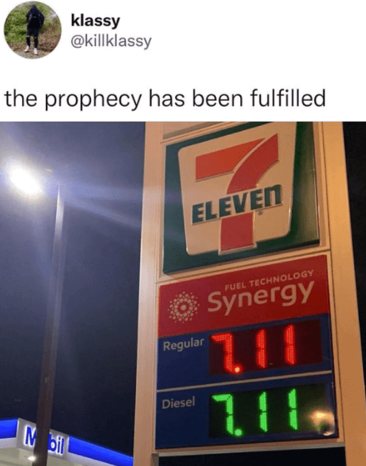 Well, looks like gas prices just fulfilled their destiny. 7.11 is the new lucky number, I guess.