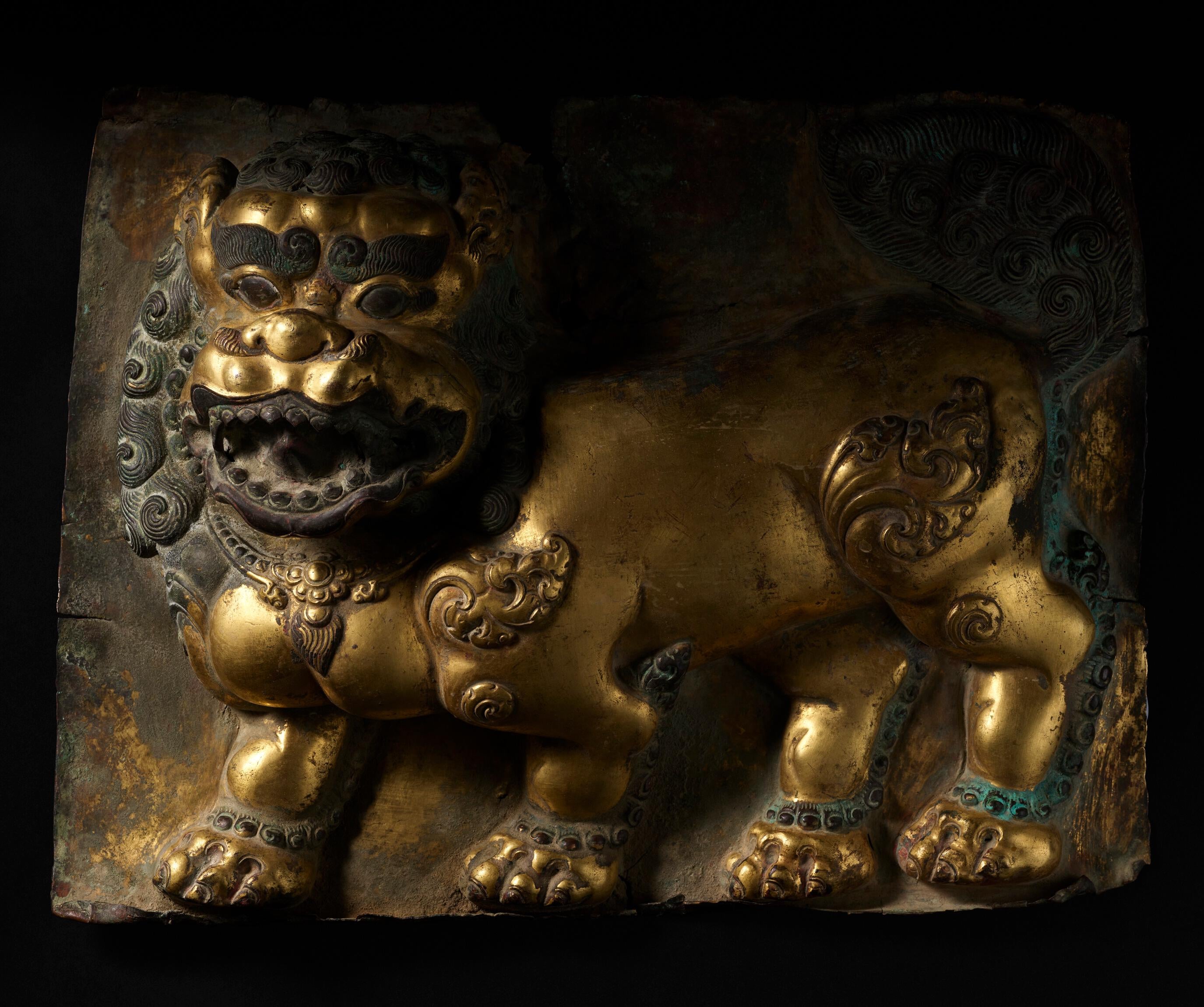 Gilded copper plaque depicting a snow lion. Tibet, 17th century [2750×2300]