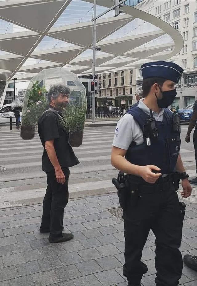 When people see this guy walking down the street with his plant helmet they say “Wow, look at that idiot”.