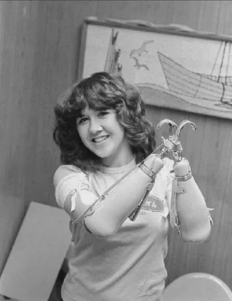 15 year old Mary Vincent in 1978, spirit unbroken after she was brutally tortured by a Serial Killer who cut off both her arms and threw her off a 30 ft. Cliff. She packed her stumps with mud, climbed the cliff back up and walked for miles naked towards the nearest hospital. [816×1056]