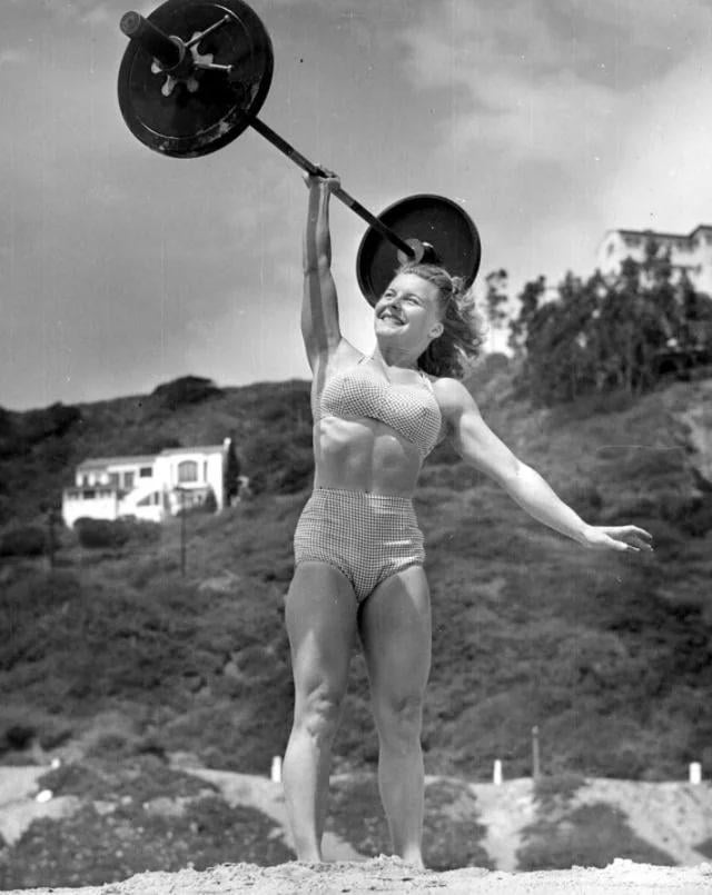 Abby Stockton managing 135 pounds with ease, Santa Monica, California 1946. she was 5ft 2 and 115 pounds. by Jesssm8