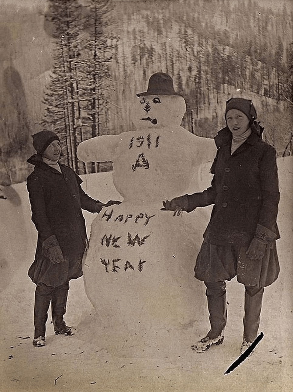 2 girls in new year eve wish you a happy new year, over 100 years ago, circa 1911. by Electrical-Aspect-13