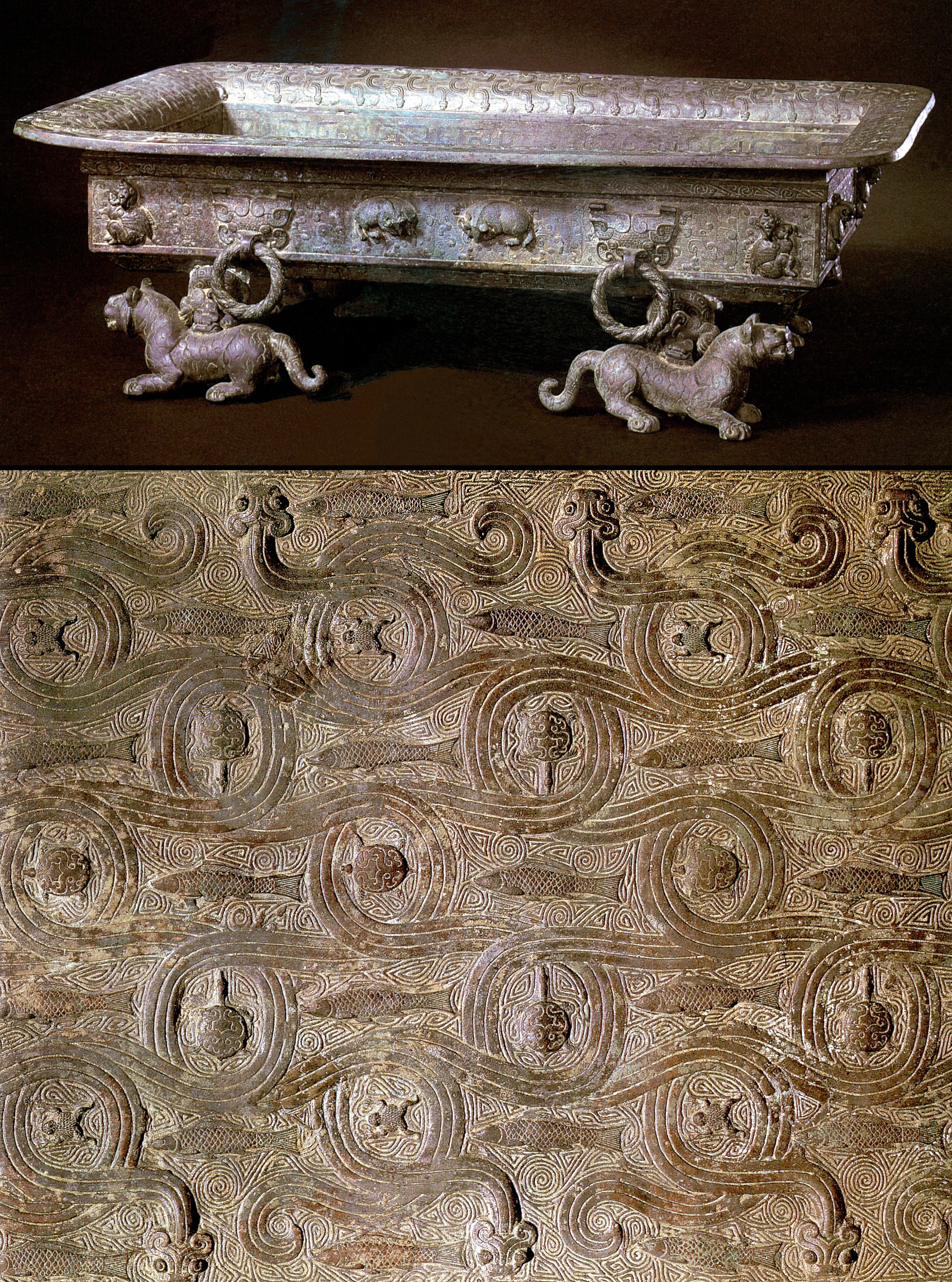 Bronze basin with pattern of fish and dragons on the inside. China, Warring States period, 475-221 BC [3000×4040] by MunakataSennin