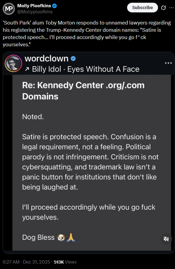 1984isAMidlifeCrisis on December 31, 2025 7:36 pm  There’s a hook in that, and a good lawyer will know when to pull on that line. I’m going to bet those Trump people are dumb enough to grab it.