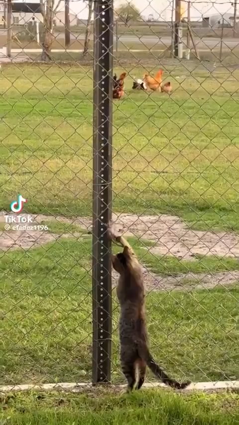 OP said chickens. All I’m see is a cat playing with a… oh.