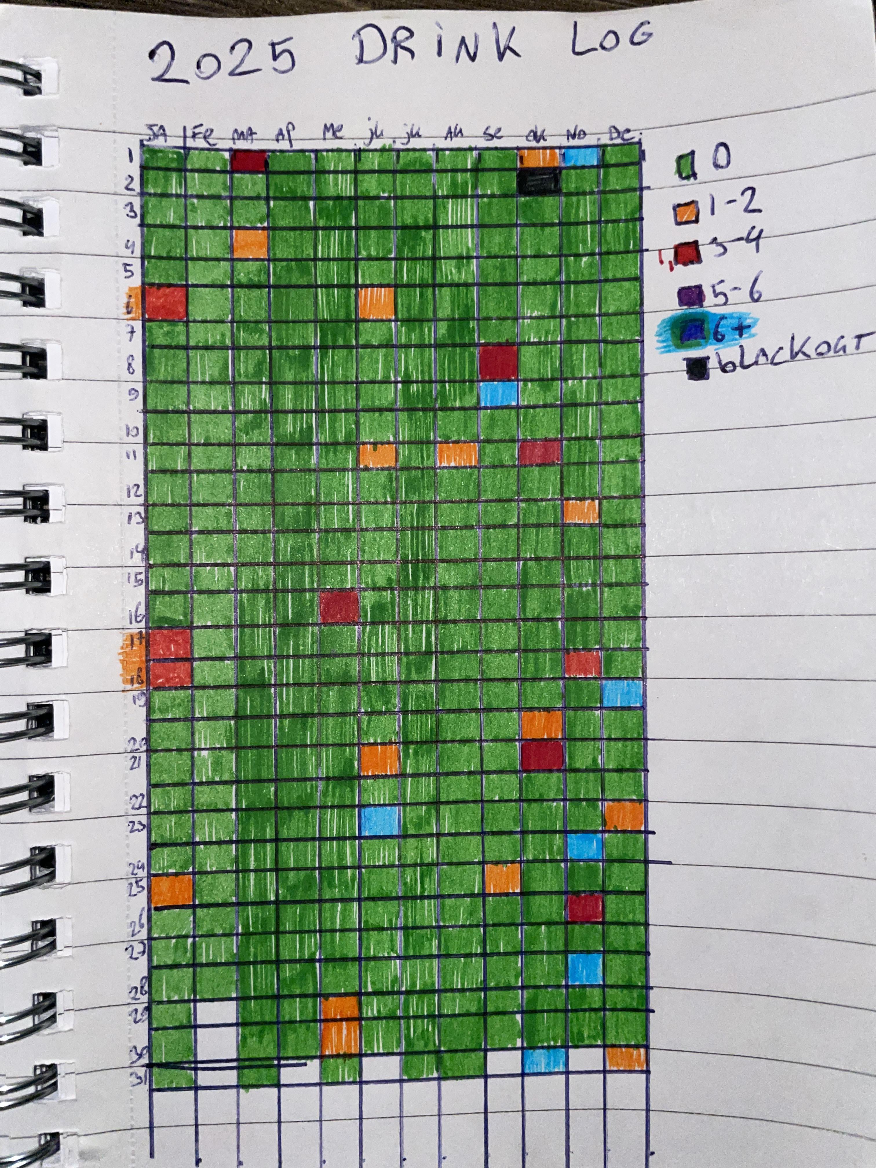 idk if you’re a recovering drinker as well, but good for you brother. first half of 2025 would have been nearly black here and the 2nd half phased into what yours looks like as i got my shit together. gives me hope. happy new year