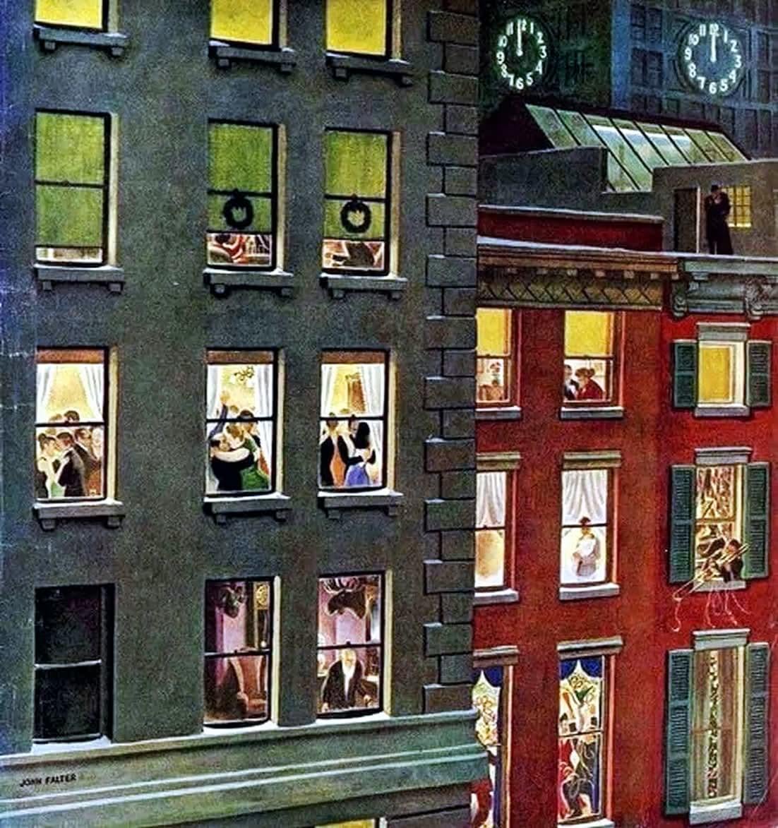 Happy New Year! “Apartment Dwellers on New Year’s Eve” Saturday Evening Post Cover, January 3, 1948 by John Philip Falter by Darvader61