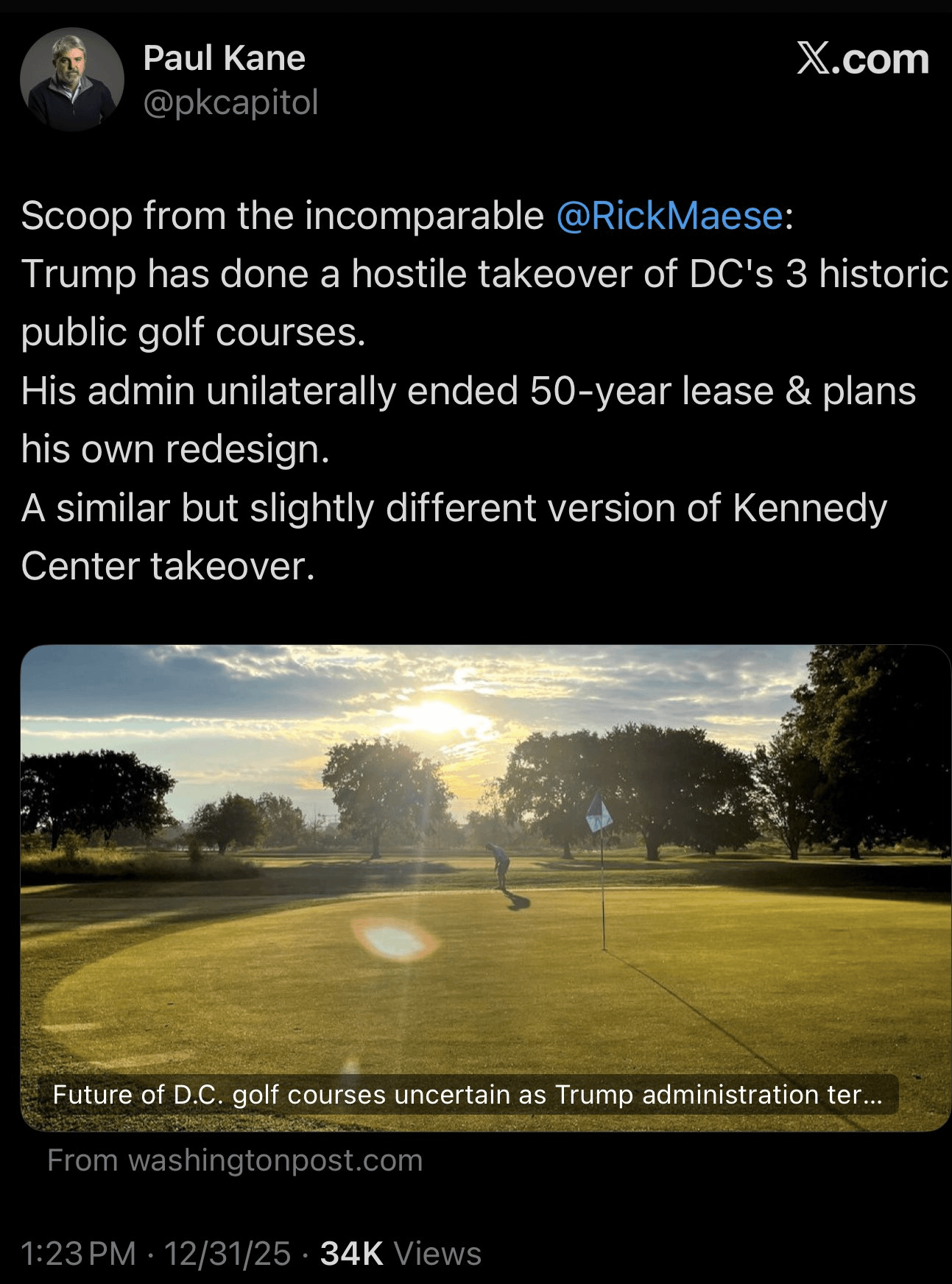 Fuck him, but also, fuck golf courses