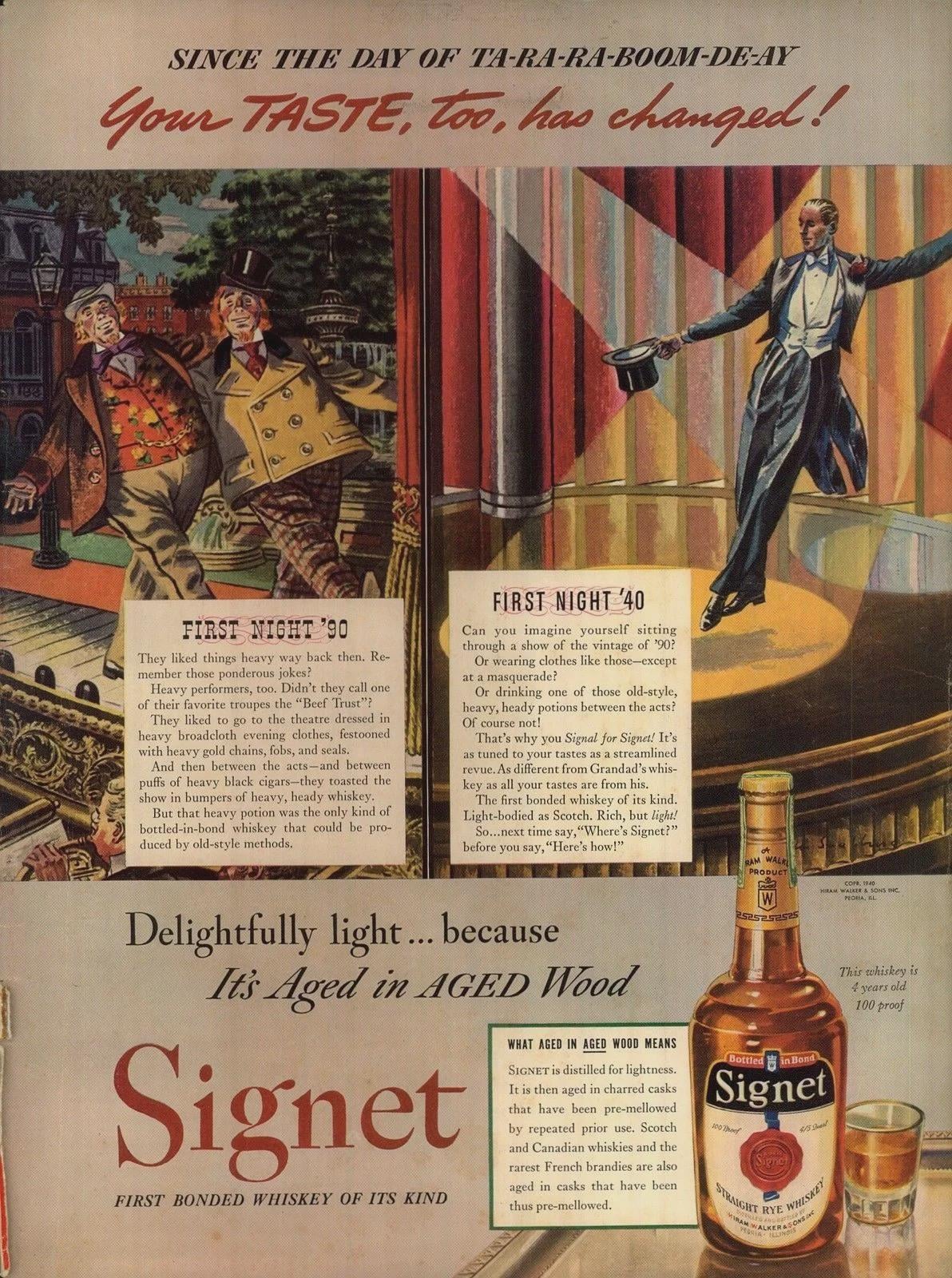 Signet Straight Wye Whiskey ad (1940)