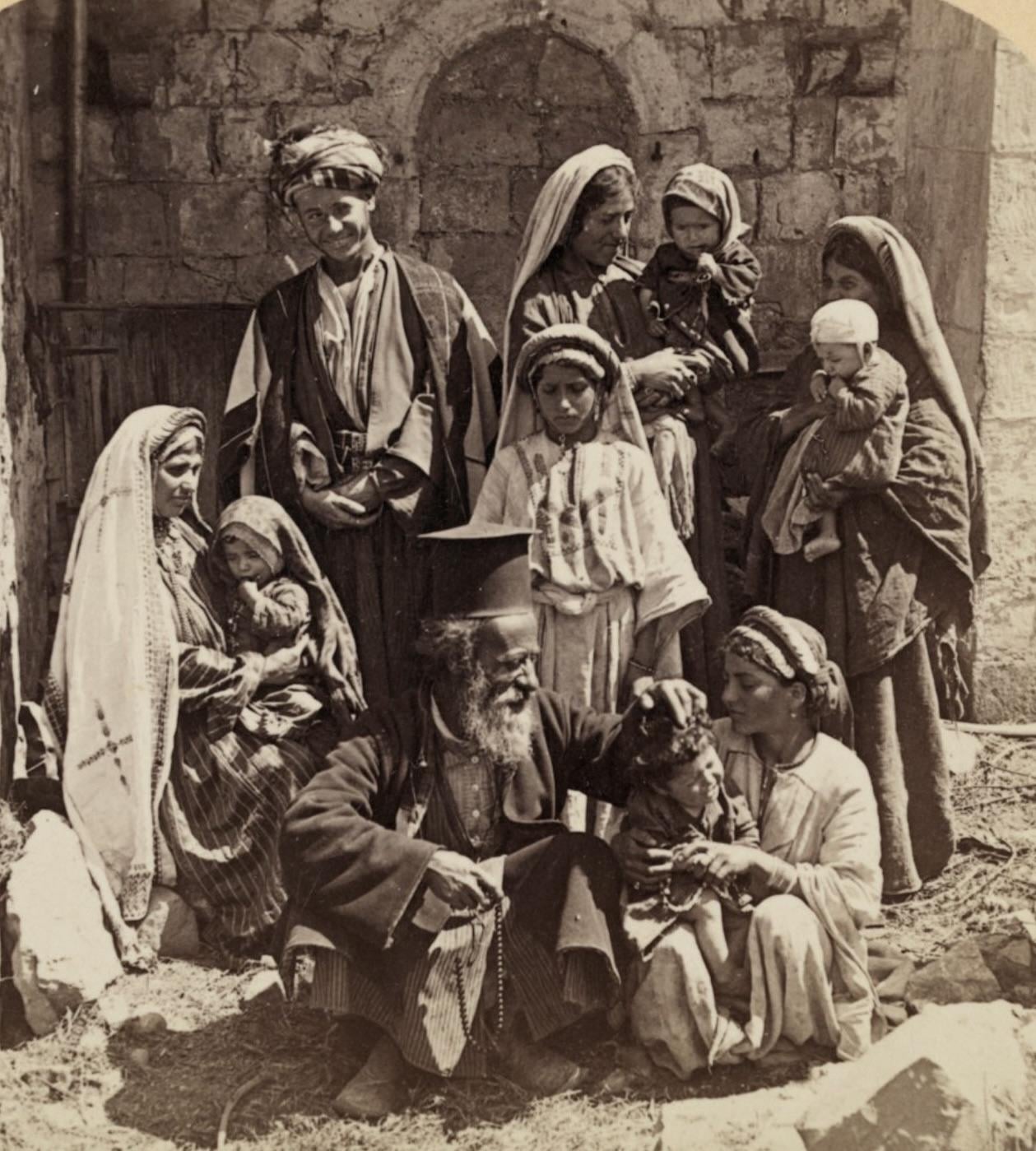 Greek Orthodox priest blessing a family in the village of Ramah, Palestine, around 1900. by CryptographerKey2847