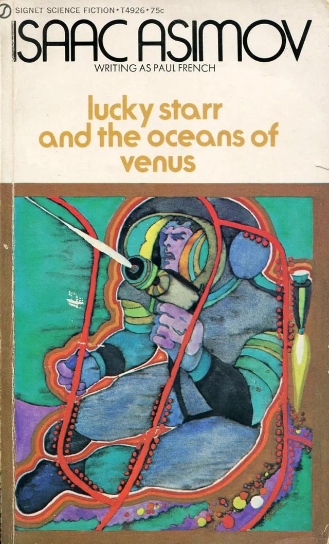 Bob Pepper had a captivating style that was instantly recognizable. While he was mainly known for his fantasy illustrations, he did venture into science fiction and his Lucky Starr illustrations capture the cold war era space cowboy aesthetic in Asimov’s series.