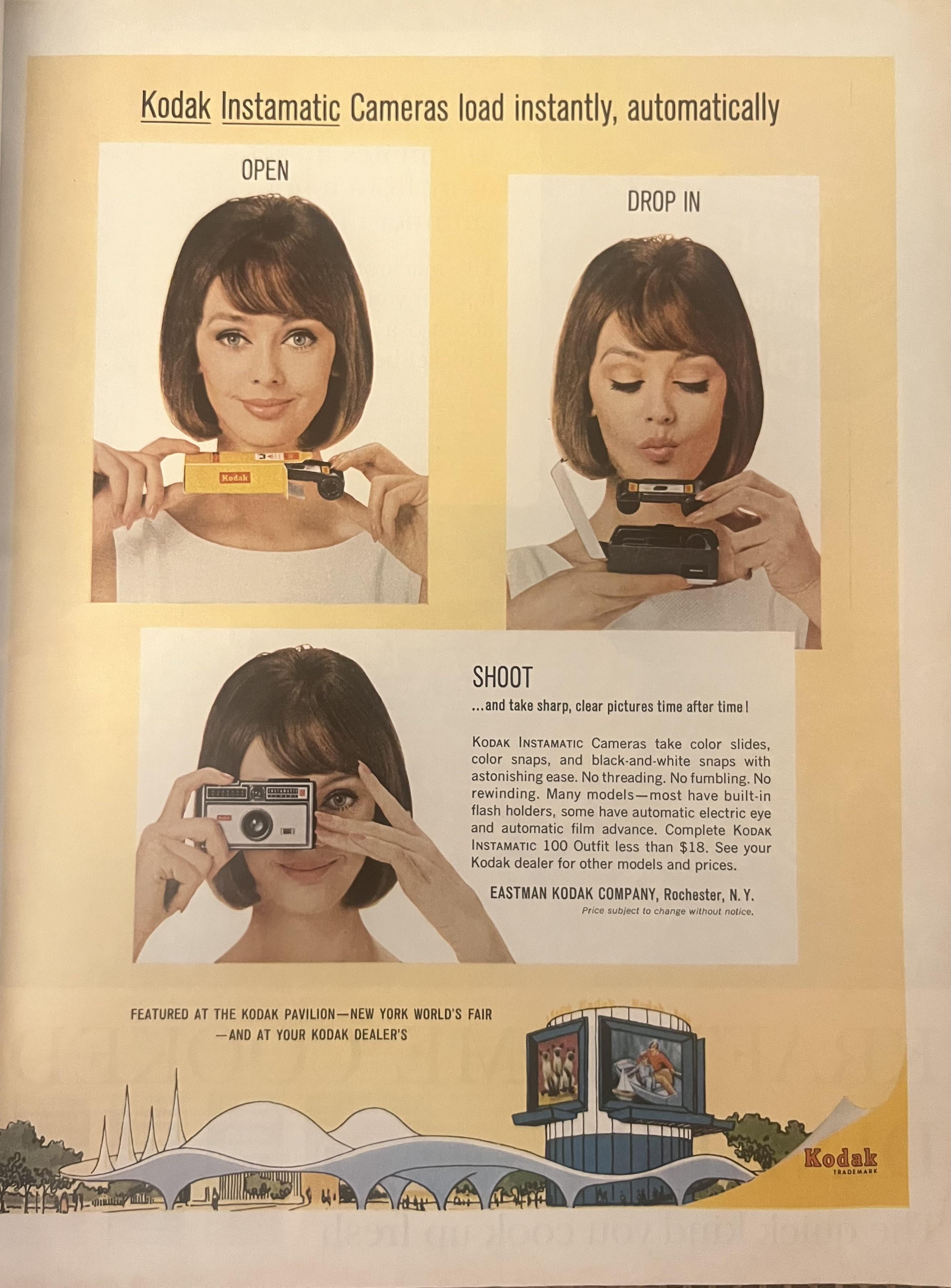 Check out this sweet Kodak ad featuring an illustration of their pavilion at the 1964 New York World’s Fair. Was anyone lucky enough to go? Unfortunately, I was 30 years too late 🫠