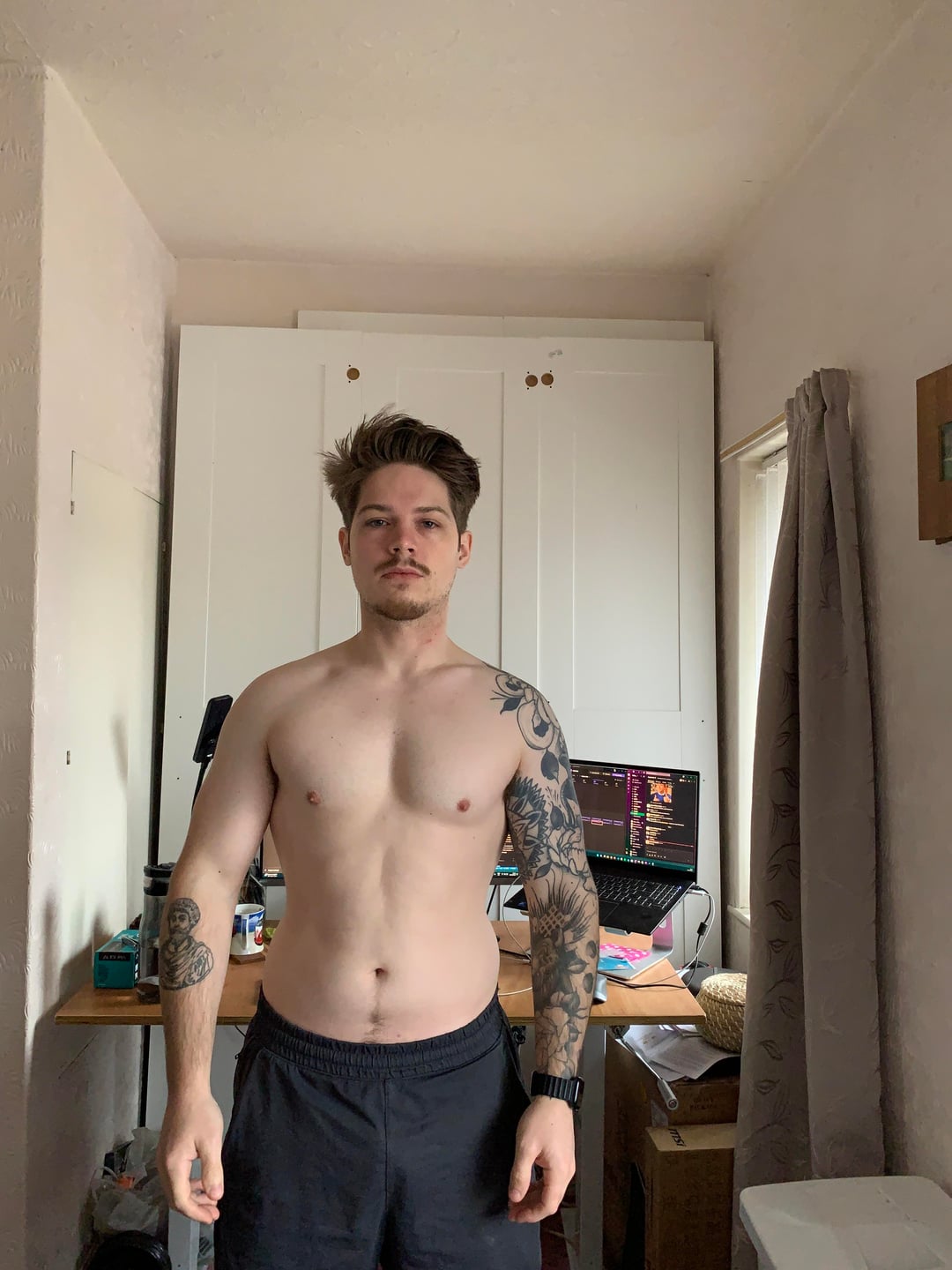 During this time I did 6 days a week PPL split focusing on maintaining my strength during the process and losing weight slowly. The majority of my energy went into focusing on compound lifts, particularly incline bench press, pull ups and leg press. I also did a ton of lateral raises to try bring up my medial delts. In my current split i'm focusing on doing 2 sets to failure per exercise as a bit of an experiment