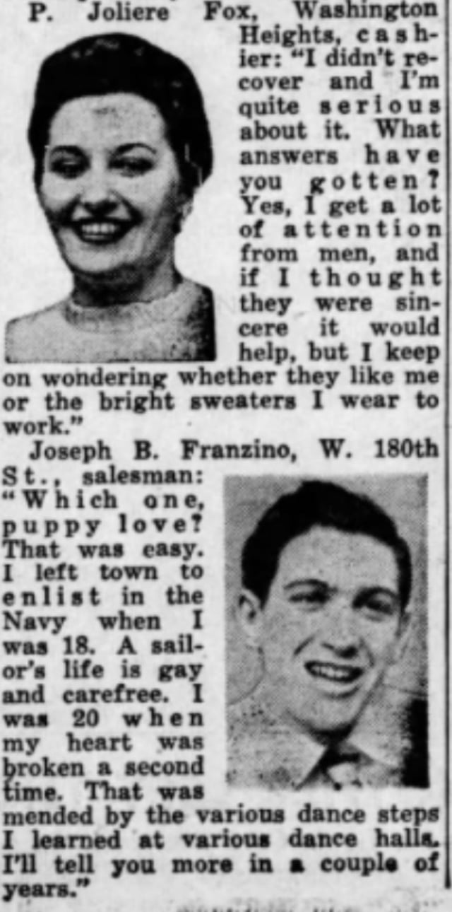 Inquiring Photographer on Instagram December 18,1947: “How did you recover from your broken heart?”