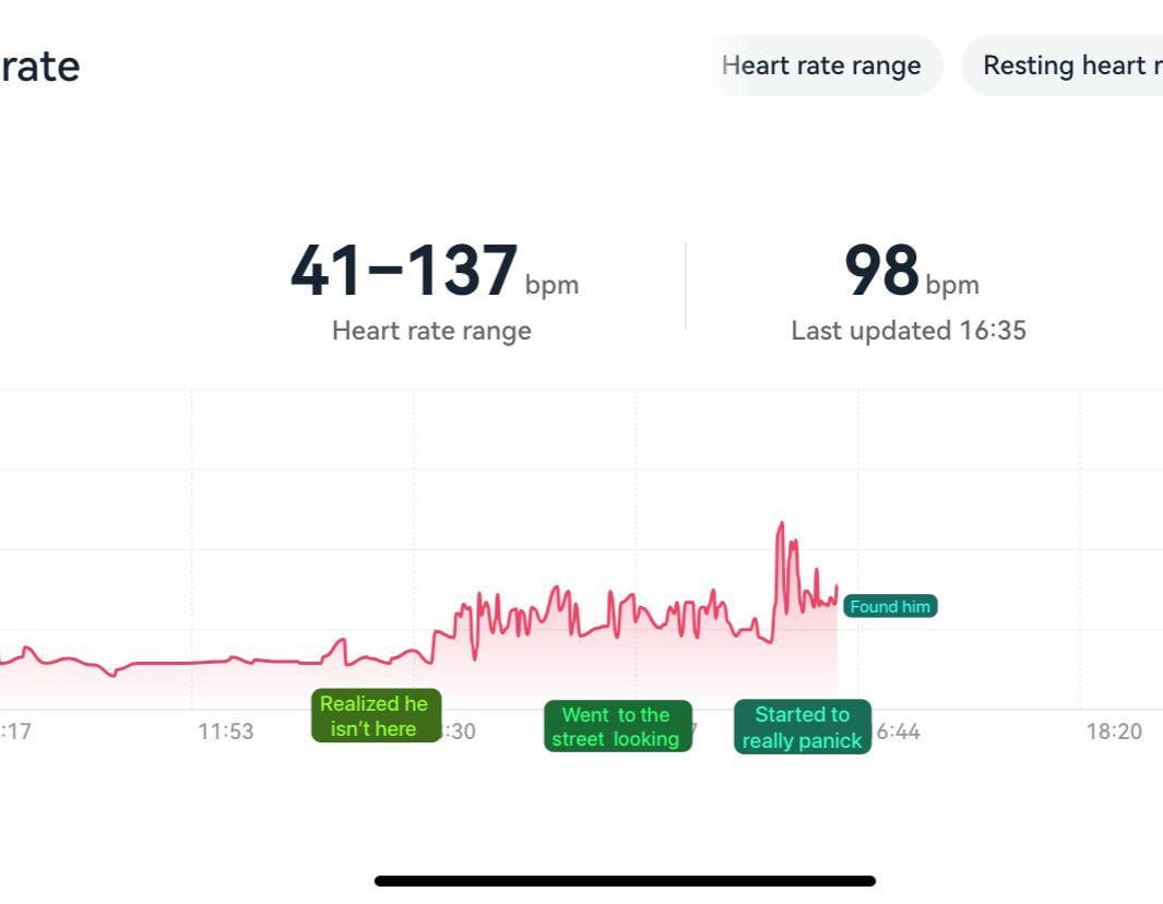 Heart rate when my cat escaped [OC]