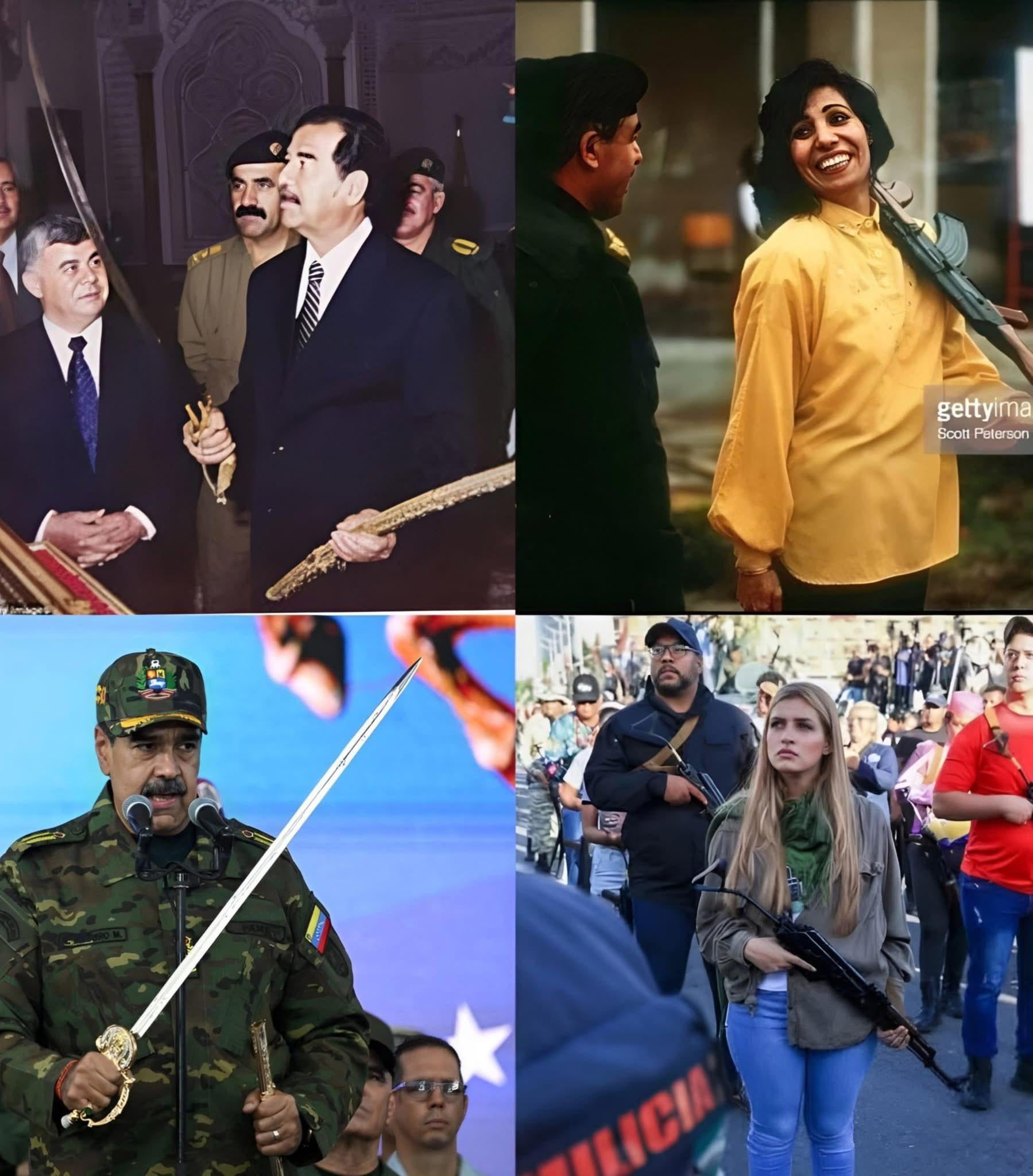 Can someone give some context on these photos? The one is Saddam Hussein, and I’m guessing the guy in the lower left is Maduro, but I’ve no idea who the two women are.