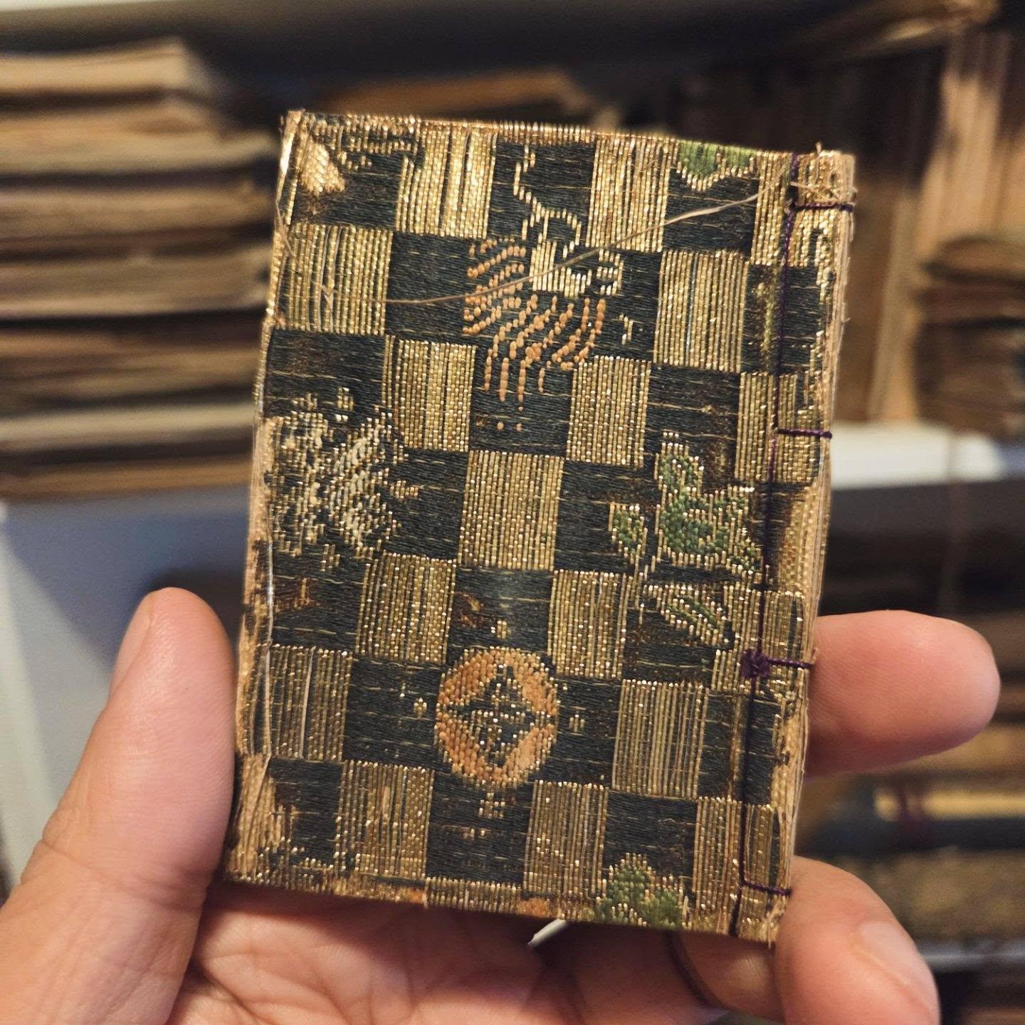 Goyozeiten’no Gyohitsu , or Emperor Go-Yōzei’s Handwriting, dated 1587. A set of five brocade bound miniature painting albums, attributed to and inscribed by the 107th Emperor of Japan. There is also a bonus brocade wallet to hold all five albums [1440×1440]