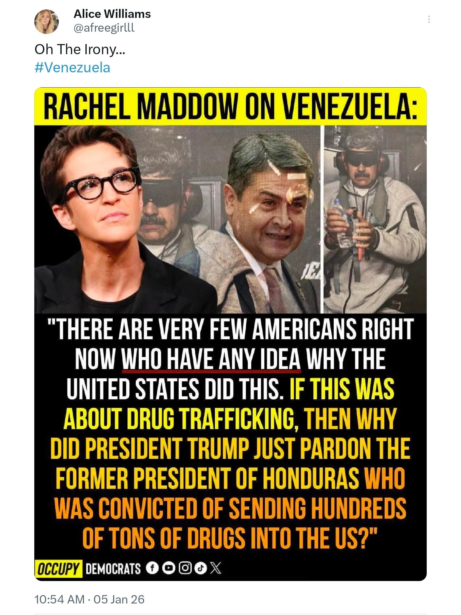 colorme1965 on January 5, 2026 8:02 am Make Argentina Great Again, and now Make Venezuela Great Again. All paid by US taxpayers. In other news, farmers going bankrupt, seniors can’t pay for their health insurance after monthly payments double. And gas is still not $1.99.
