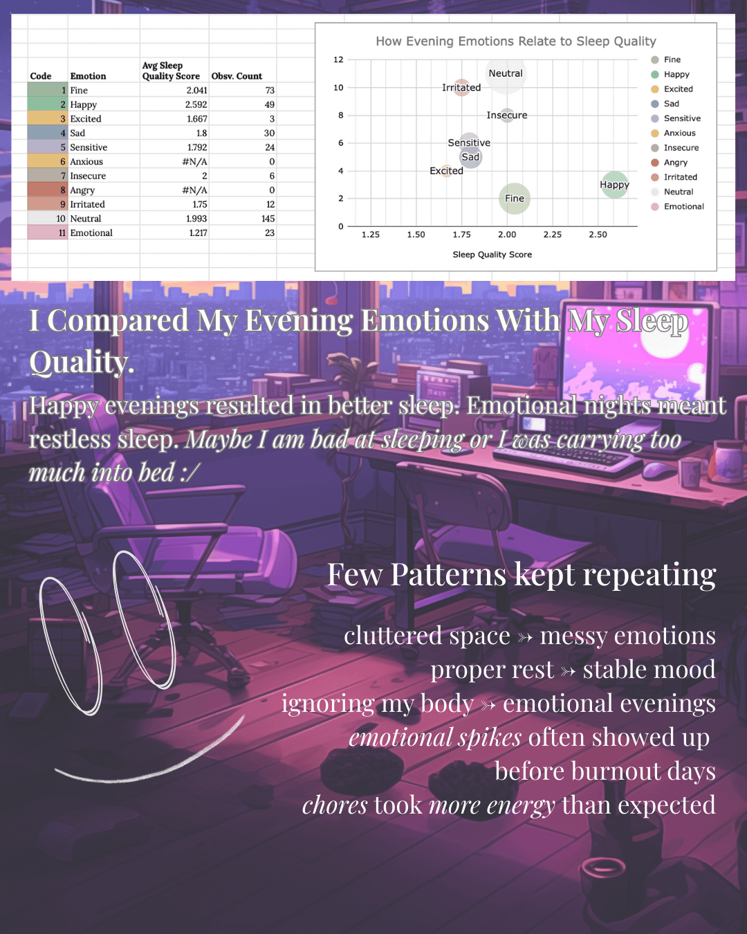 - Ignoring my body often led to emotional evenings