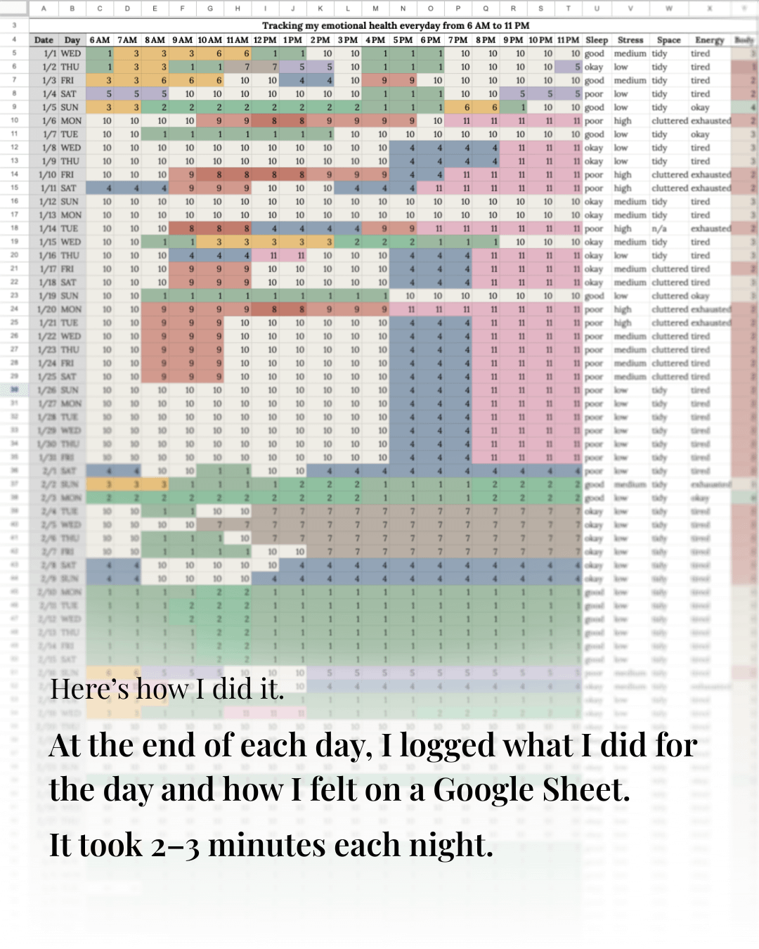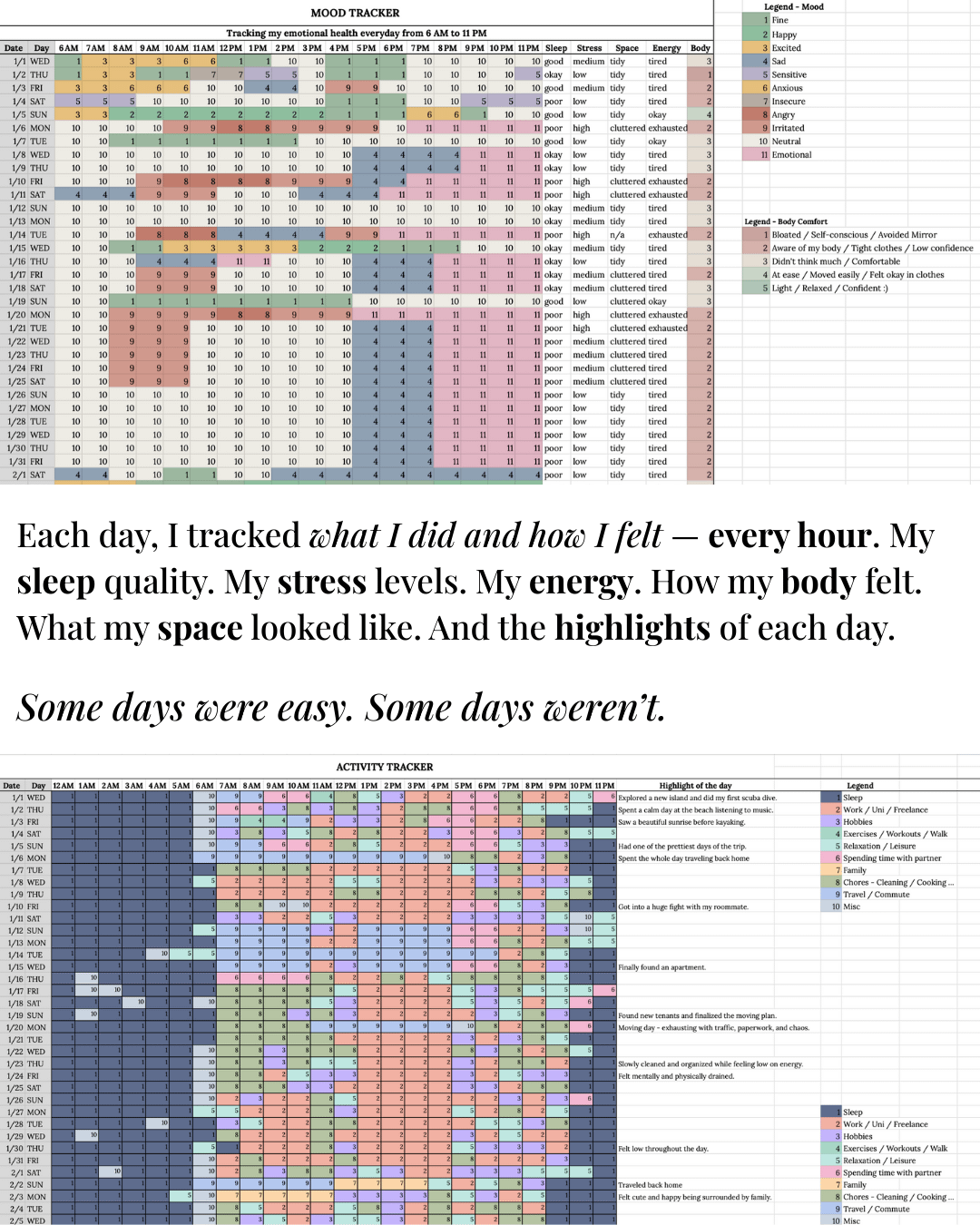 Not just activity but also mood, energy, and how my body felt.