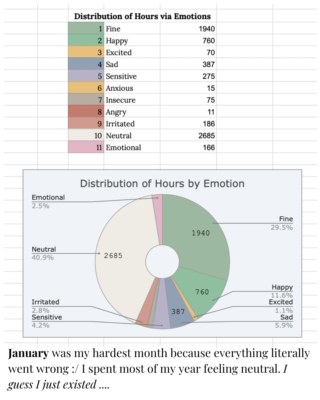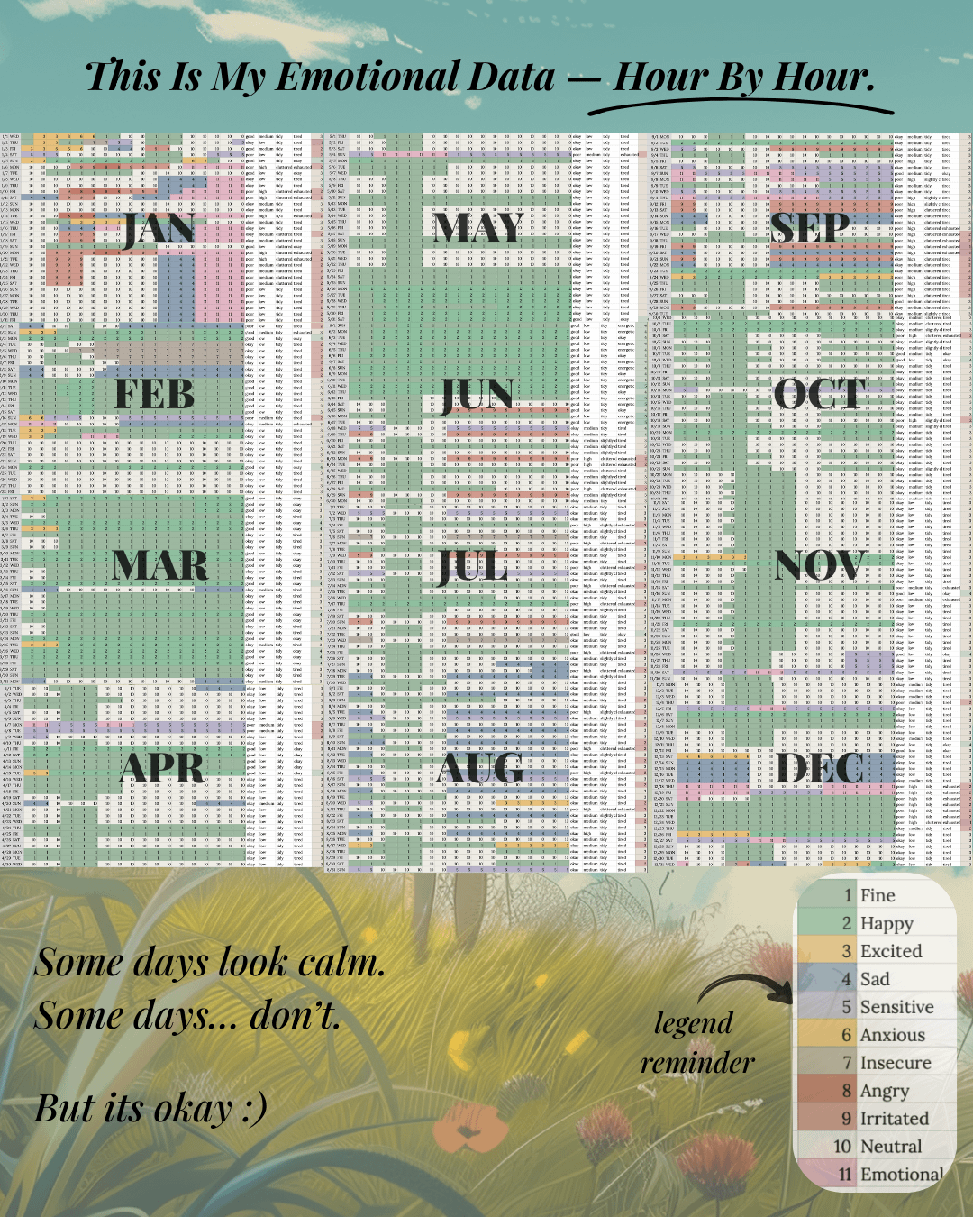 At the end of the year, seeing the highlights of each day all together was honestly emotional. I realised that even though I kept telling myself I “didn’t achieve anything” in 2025, I was actually… okay most days. Mostly neutral. And that realisation made my New Year’s Eve a lot better — I was being way harsher on myself than the data showed.