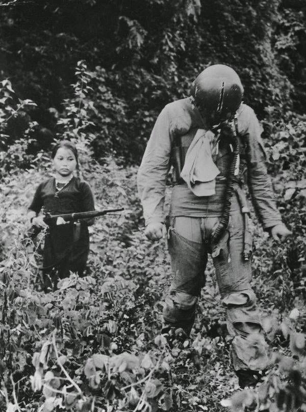 A US Air Force lieutenant is held captive by a young North Vietnamese soldier, 1967 [600×809] . by Zine99
