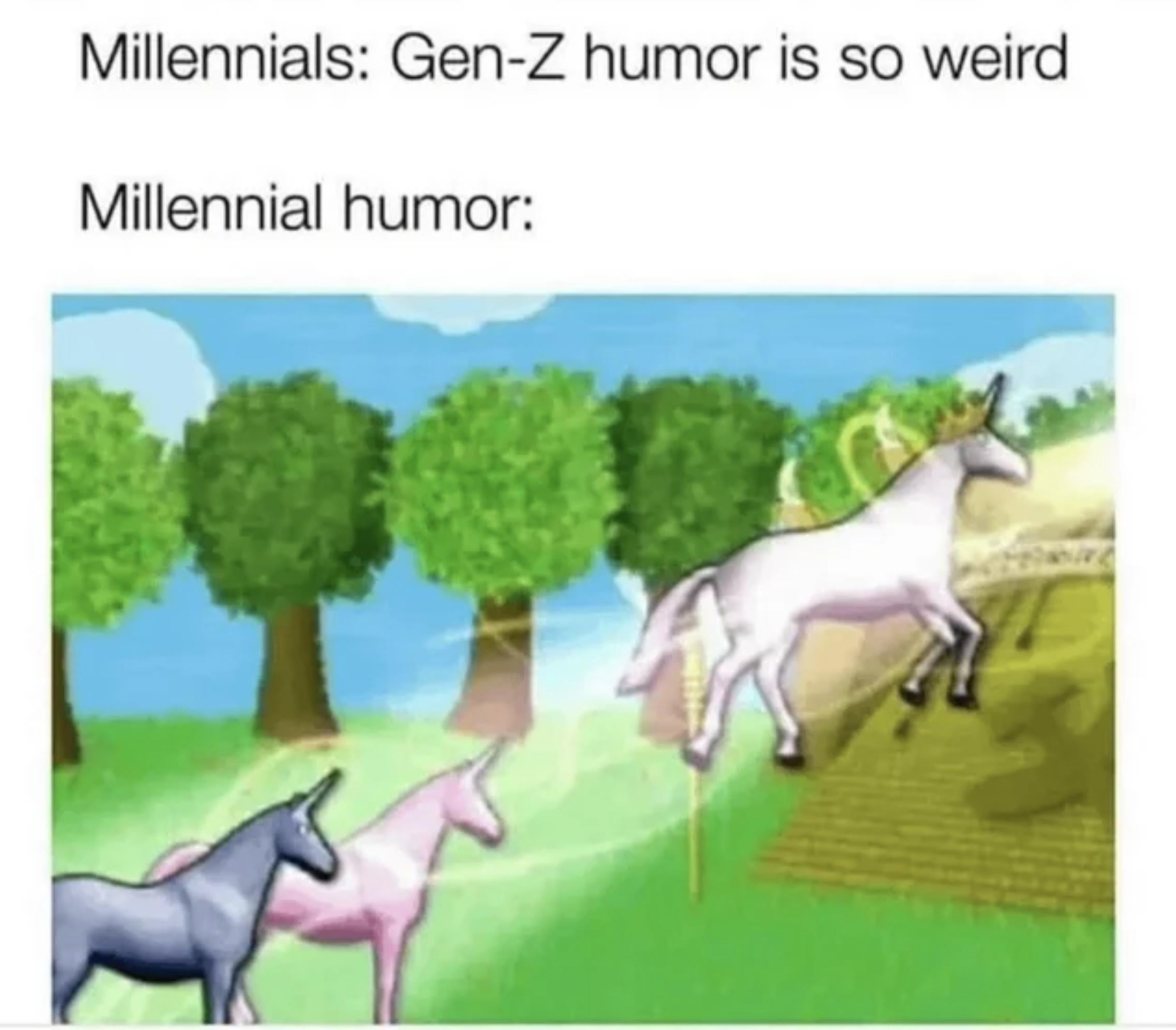 Tbf at least Millenials and Gen z humour had context and set up, gen alpha however feels like you could say anything weird and it’d be funny