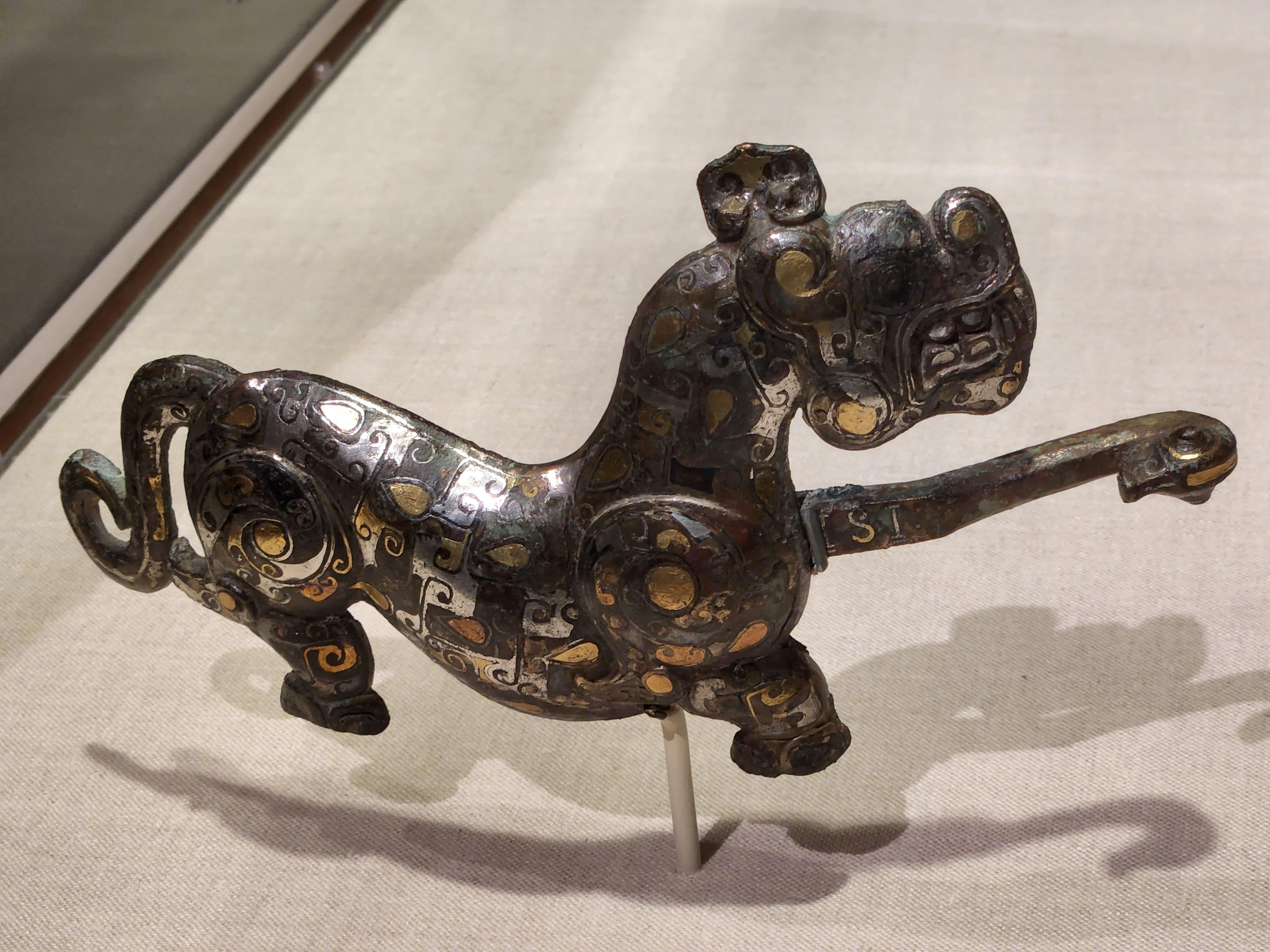 Belt hook in the form of a tiger. China, Warring States period, 4th c BC. Bronze inlaid with gold and silver. Loaned to the Metropolitan Museum of Art [4000×3000] [OC]
