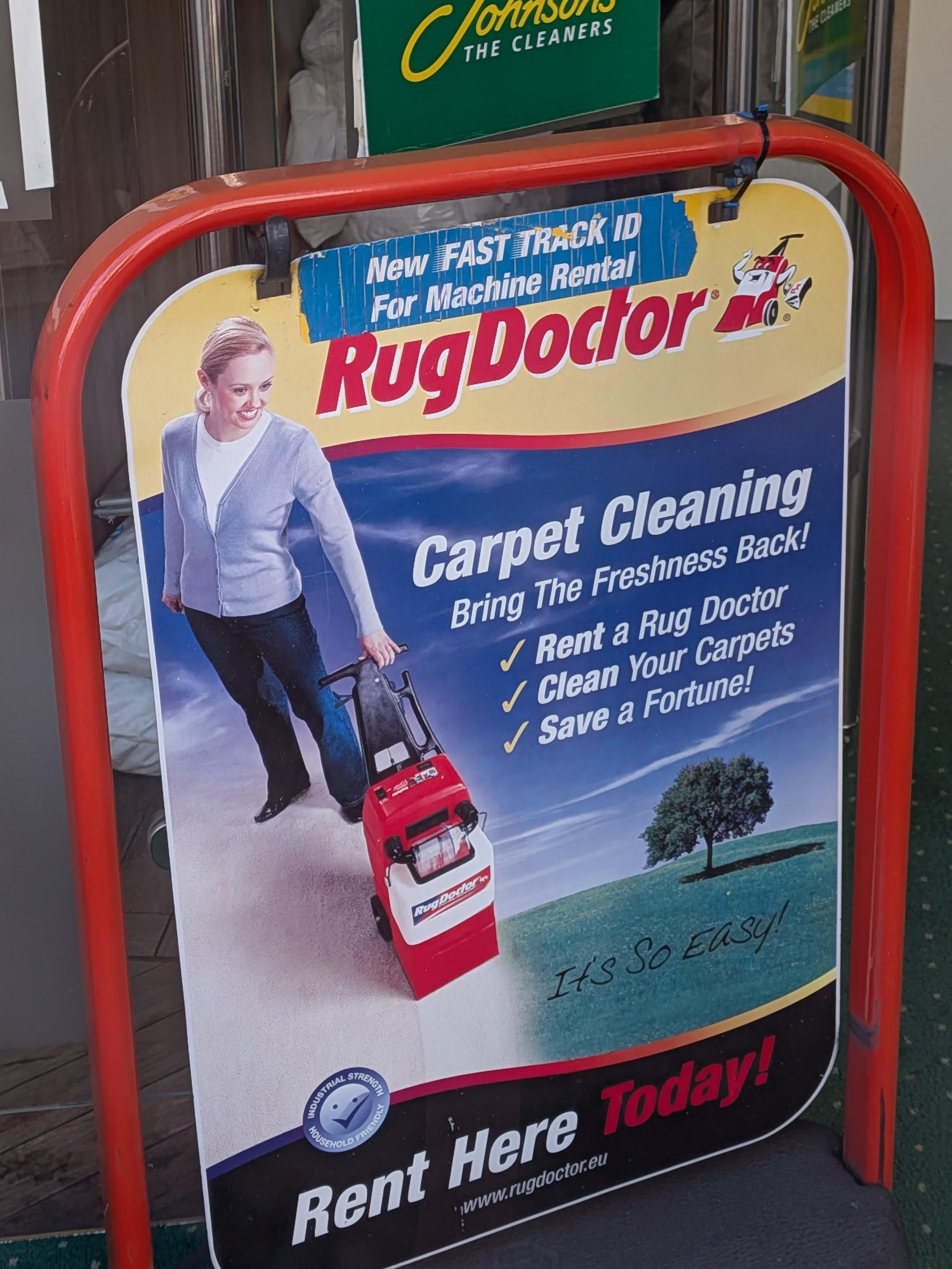I seem to recall Rug Doctor ads in the 80s with the anthropomorphic steam cleaner telling me it was “steaming mad at dirt” which seems to not be in tune with the doctor theme.