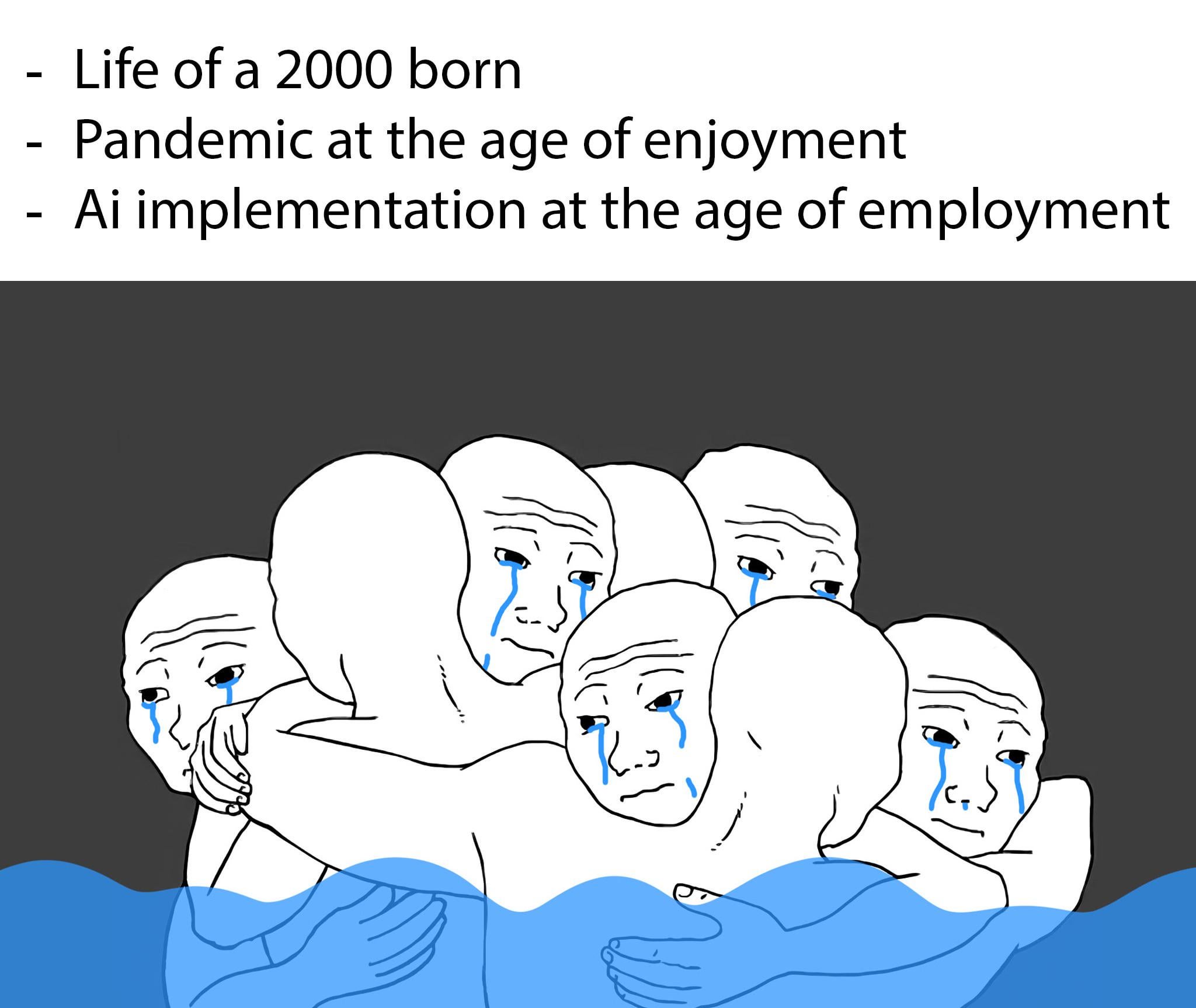 Oh fuck off. If you are from a Western country you are living in the best possible era to be alive. I always cringed about this “Covid trauma”. You are traumatised because you did not go to school for two years and had to wear mask on the street? Because of a virus that posed your age group as much danger as a flu? Becasue you had to buy monster energy for 30% more?