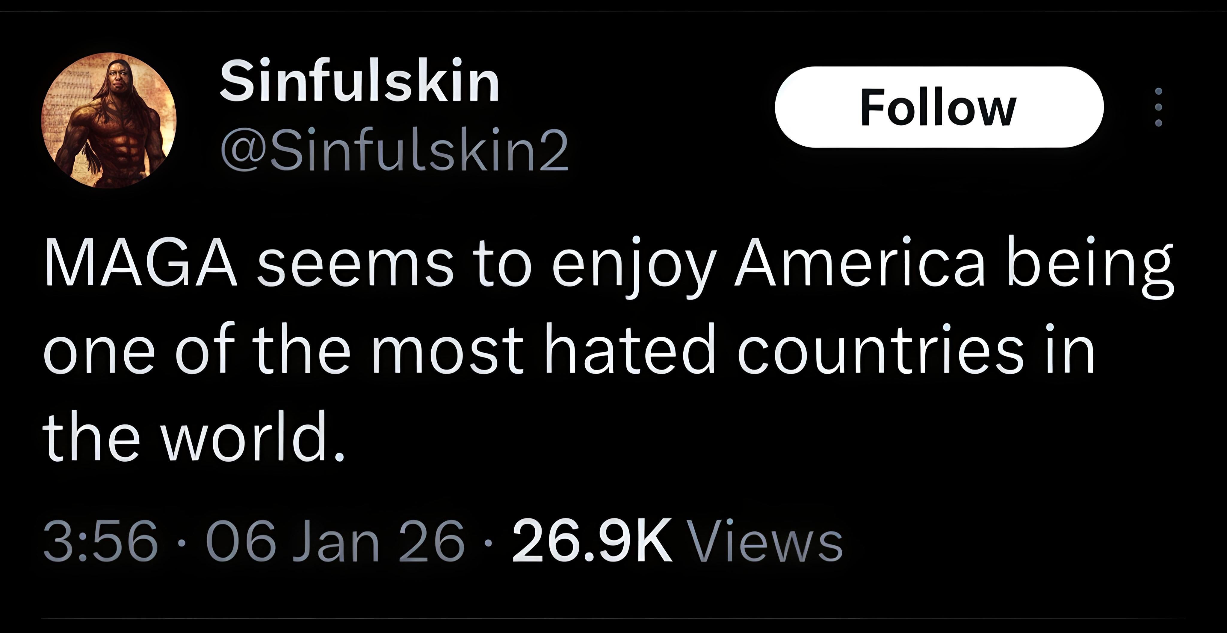 No they genuinely think that we’re respected on the world stage. This is because they don’t listen to anybody outside their echo chamber, especially not foreigners.