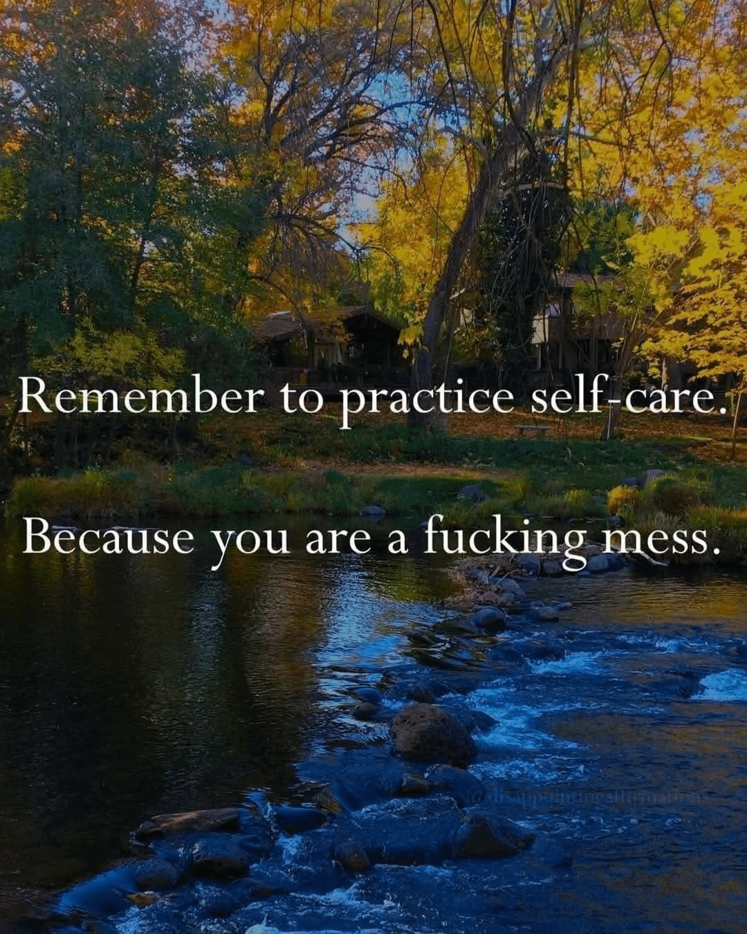 Don’t stop self-care cause you’re a mess right now. That’s when you especially need self-care. [image] by FinnFarrow