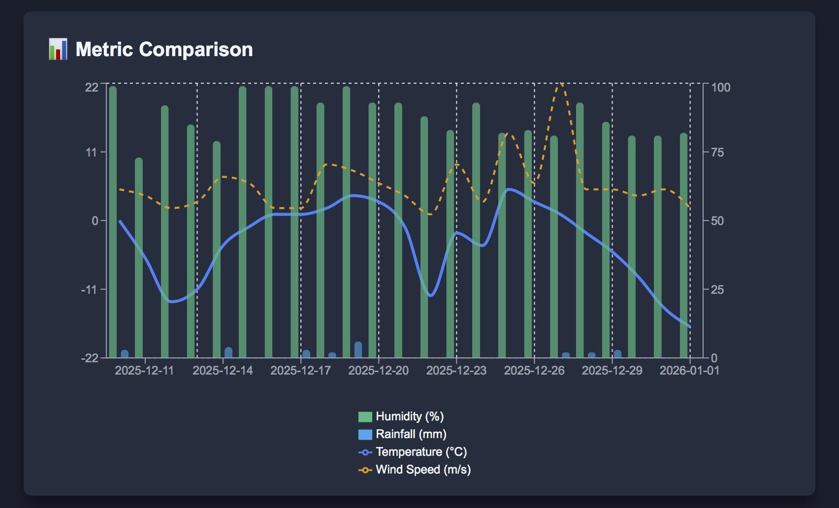 I built a simple app to track this because I wanted to see patterns over time. The chart shows humidity, rainfall, temperature, and wind speed.