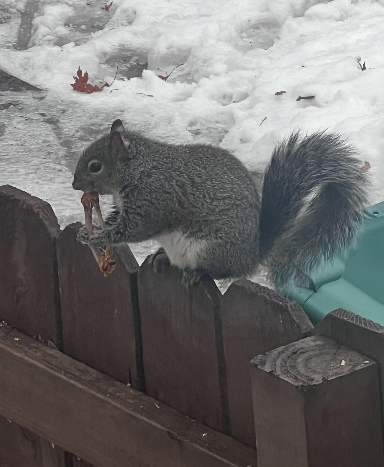 Had to repost due to title rule, but looked out my window and saw the most unhinged thing I’ve ever seen a squirrel do. Did anyone have carnivorous squirrels on their 2026 bingo card?