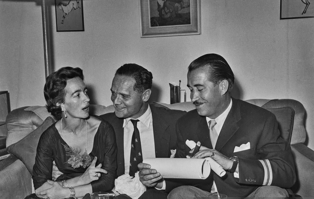 Western Front flying aces Group Captain Sir Douglas Bader, RAF (Left) and Generalleutnant Adolf Galland, Luftwaffe (Right) at a dinner party, September 14th 1959 (1021 x 648).