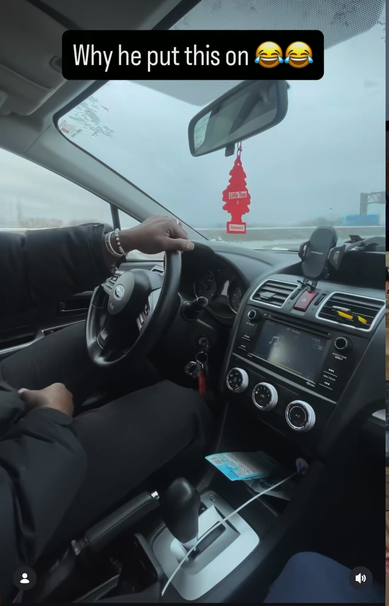He really out here performing a whole concert while driving 60 mph on a snowy highway.