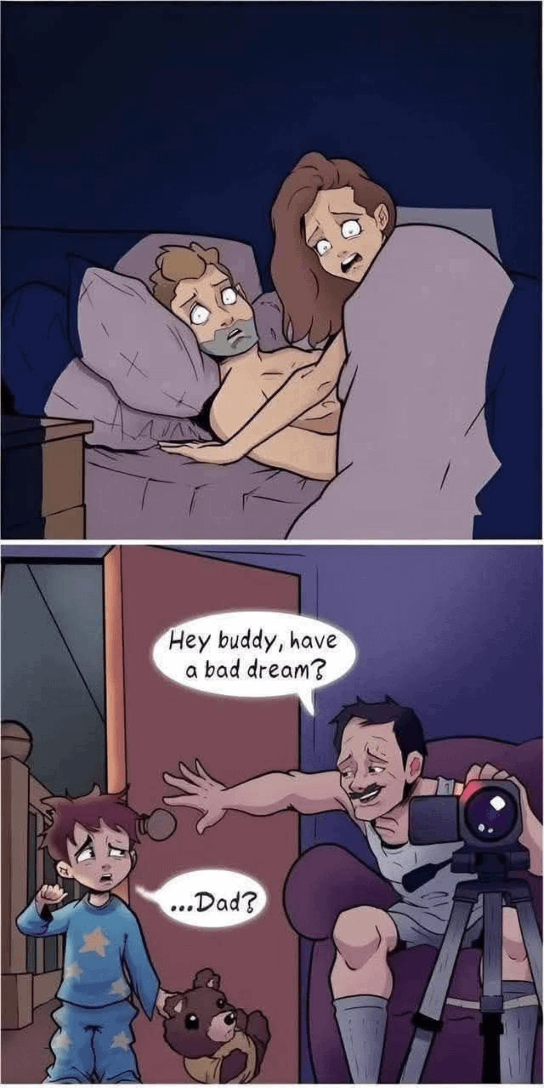 Orichalchem on January 7, 2026 8:09 am Son: Hey dad, why is mom on top of uncle? Dad: Son, there are things in life where its best not to know, and this is the time, think of this as a dream Son: i see, thanks dad ill go to bed now