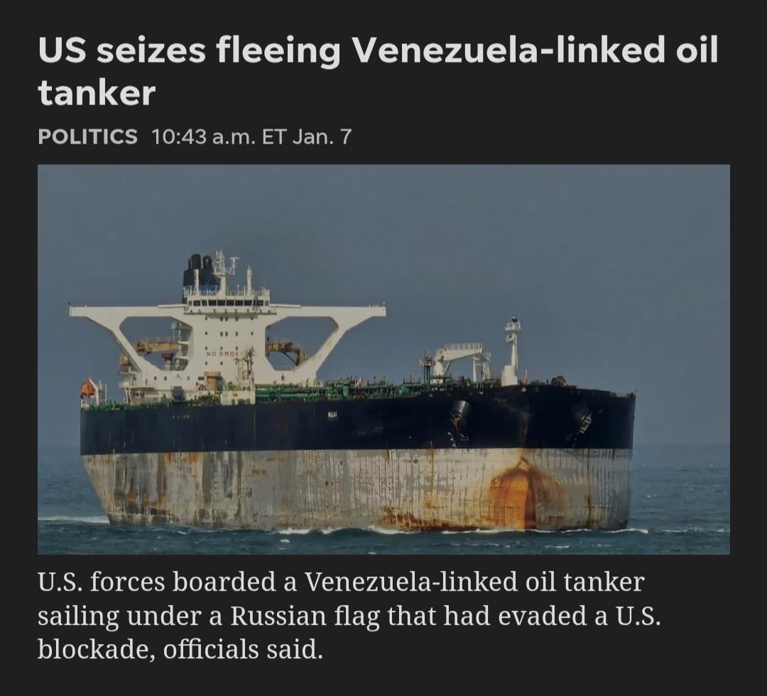 The fentanyl & cocaine excuse was for November & December, it’s January now so we switched to oil & non-US dictators are bad, which will likely stay until POTUS’s dementia kicks in & blurts out some other reason & everybody pivots to that