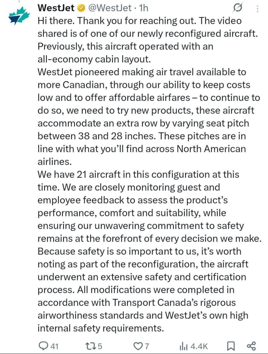 I’ll still fly long haul on WestJet, their 787s are NOT being reconfigured and my options long haul are WestJet or air Canada.