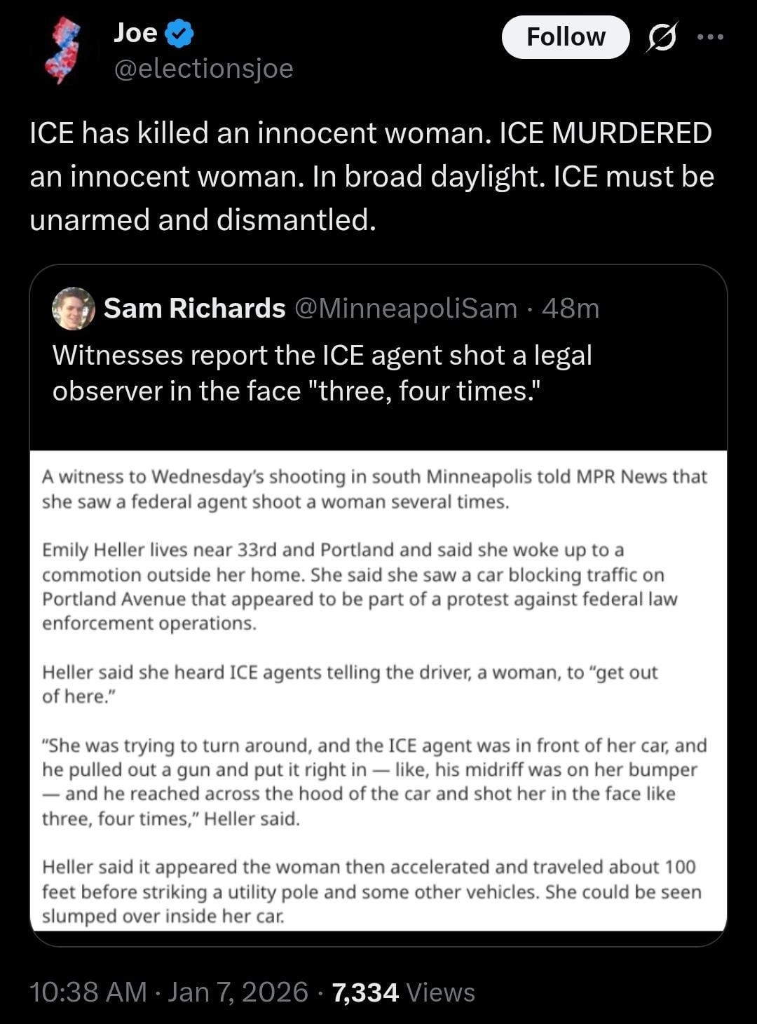 I so direly and dearly hope this, another fucking ICE caused death is the end of this. Sadly, my brain thinks it won’t be since we are at least 5 or 6 last straws in.