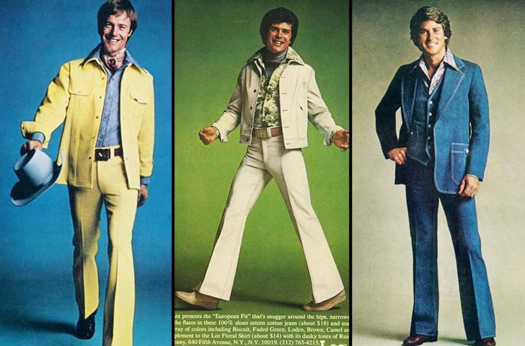 Loving the denim leisure suit. Really needs some platform shoes.