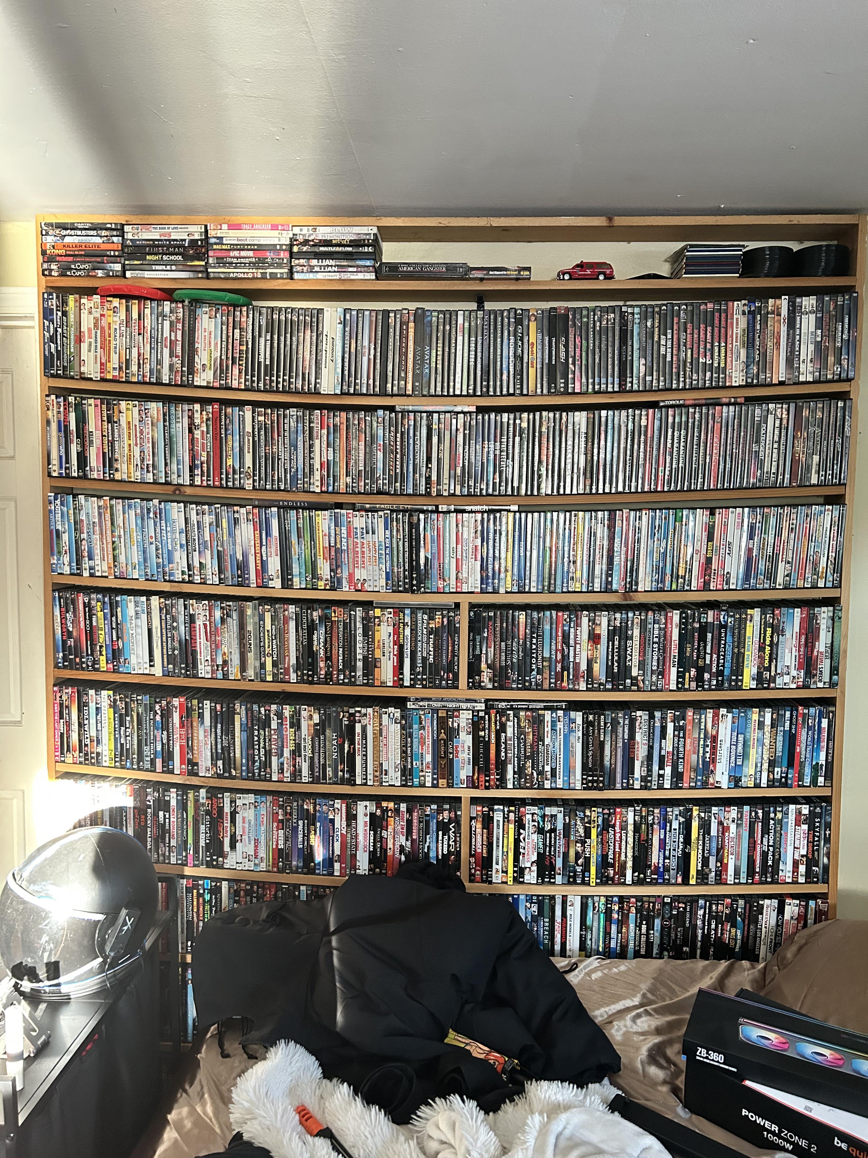 Total Recall. I am noting that at this point, the dvd’s are holding up the shelves lol. The flex on that wood is quite impressive.