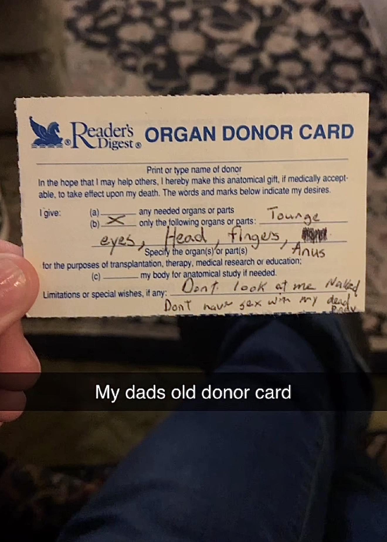 Wait, if he doesn’t want me having sex with his dead body why did he donate his anus?