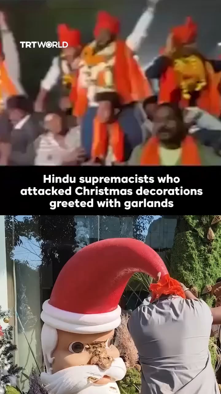 Indian mob who vandalized Christmas celebrations in last Christmas, destroyed Christmas decoration and stopped the whole program is getting treated like heros and being greeted with garlands