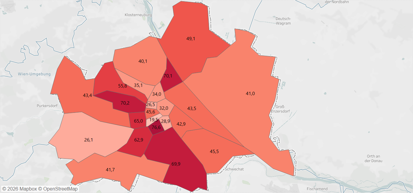 Data source: https://www.heute.at/s/hier-sprechen-kinder-kaum-deutsch-das-bezirks-ranking-120153973, https://github.com/ginseng666/GeoJSON-TopoJSON-Austria Tools: Tableau Desktop for visualization by ropericpe