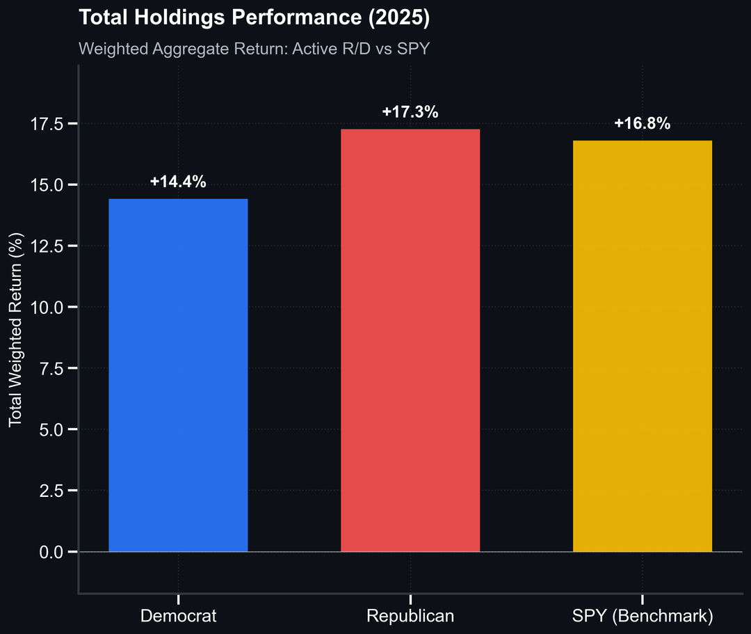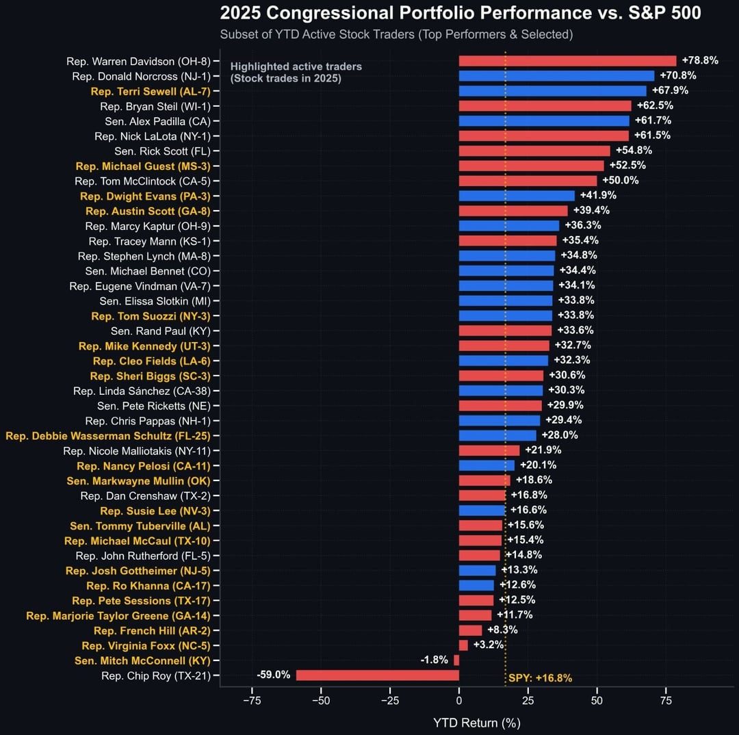 hallese on January 8, 2026 6:24 pm Is this saying that out of 535 voting members of Congress, only 29 are beating the S&P 500 over the last year?