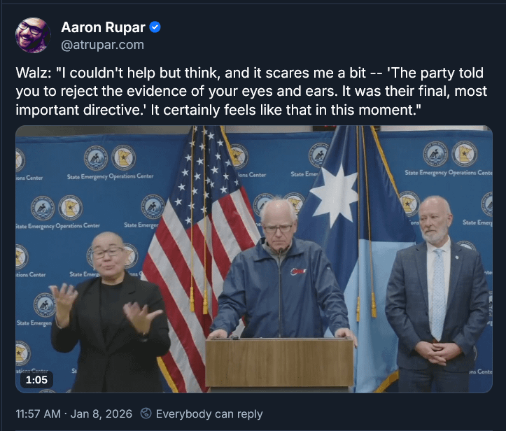 I like Walz, but saying “It certainly feels like that in this moment” makes him sound a decade late to a realization most of us reached long ago.